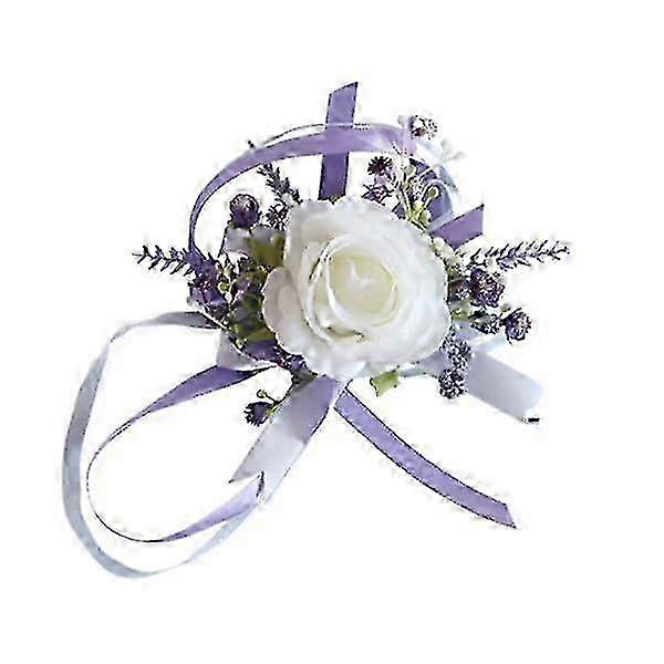 w White Rose Wrist Corsage - Real-Touch Lavender Bridal/Boho Décor