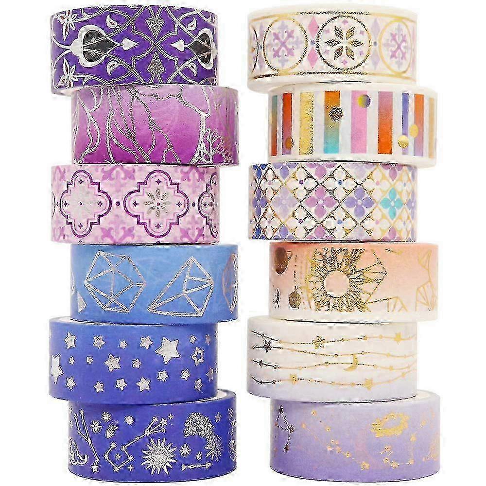 w 12 Rolls Purple Night Galaxy Washi Tape Set for Crafts