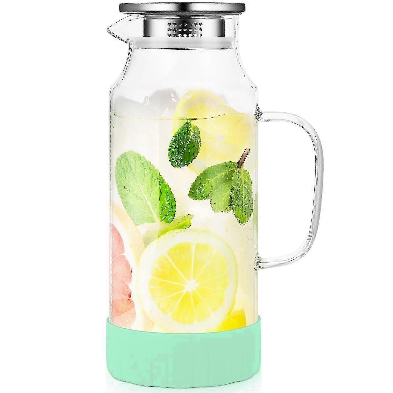 w 2 Liters Heat Resistant Glass Pitcher for Fridge Water Carafe Drink Juice Iced Tea Summer 68 oz