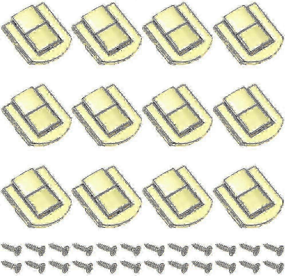Characteristics :Product Name: Retro Chest Buckle.Material: zinc alloy.Color: golden.Dimensions:Length x width x height: 25 x 20.5 x 6 mm.1. The locking buckle is made of strong and durable material, which will not easily rust, age and warp.2. The latch can ensure reliable fixing and not easily slip.3. Small and portable, easy to install, especially suitable for DIY.4. The lock is equipped with mounting screws, so you don't need to buy screws, saving time and effort.Contents:12 toggle trunk locks.24 screws. Note: Due to the light and screen setting difference, the item's color may be slightly different from the pictures. Please allow slight dimension difference due to different manual measurement.