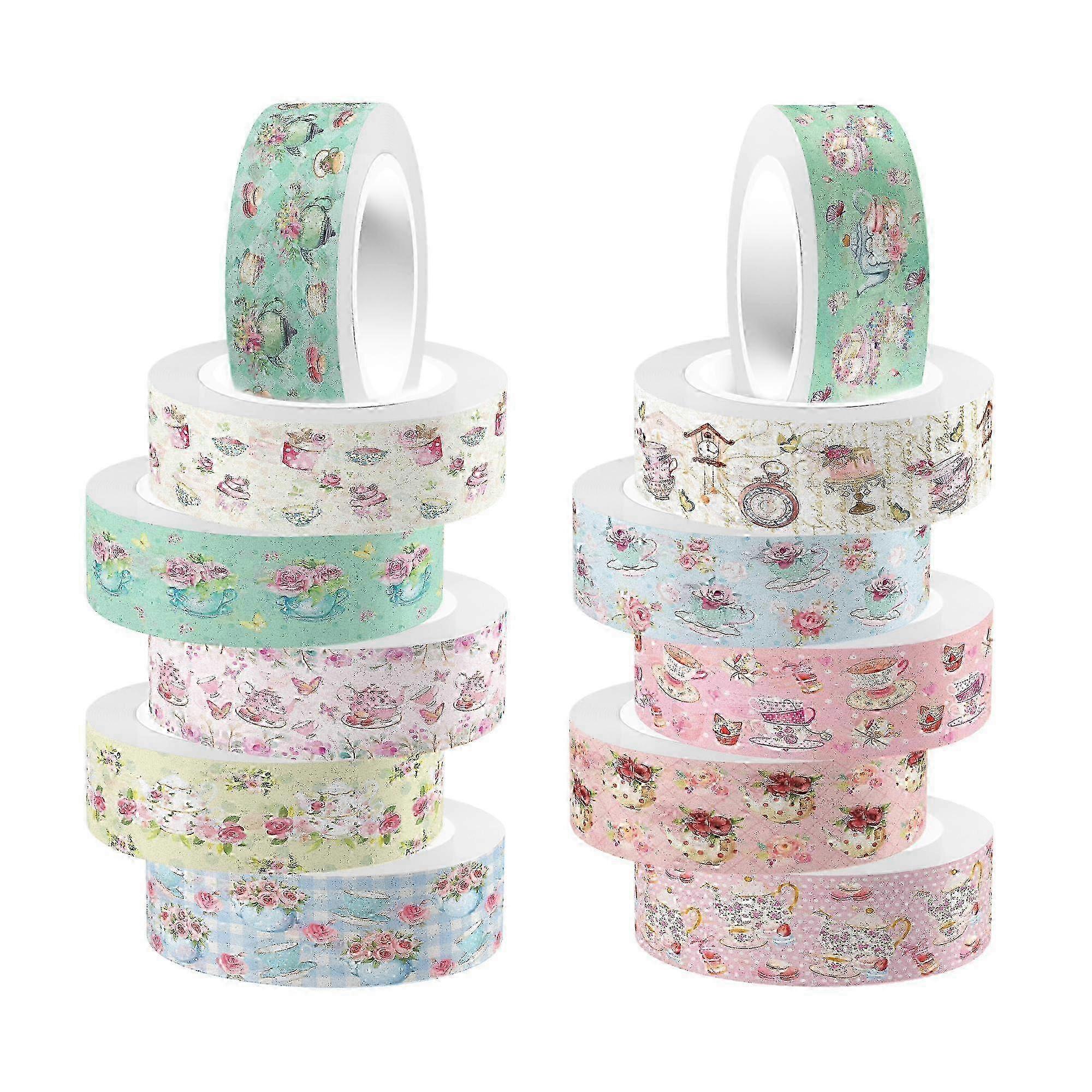 w Tea Party Decorative Tape Set, 12 Rolls for DIY Crafts, Gift Wrapping, Scrapbooking, Bullet Journals, Planners, Party Decor
