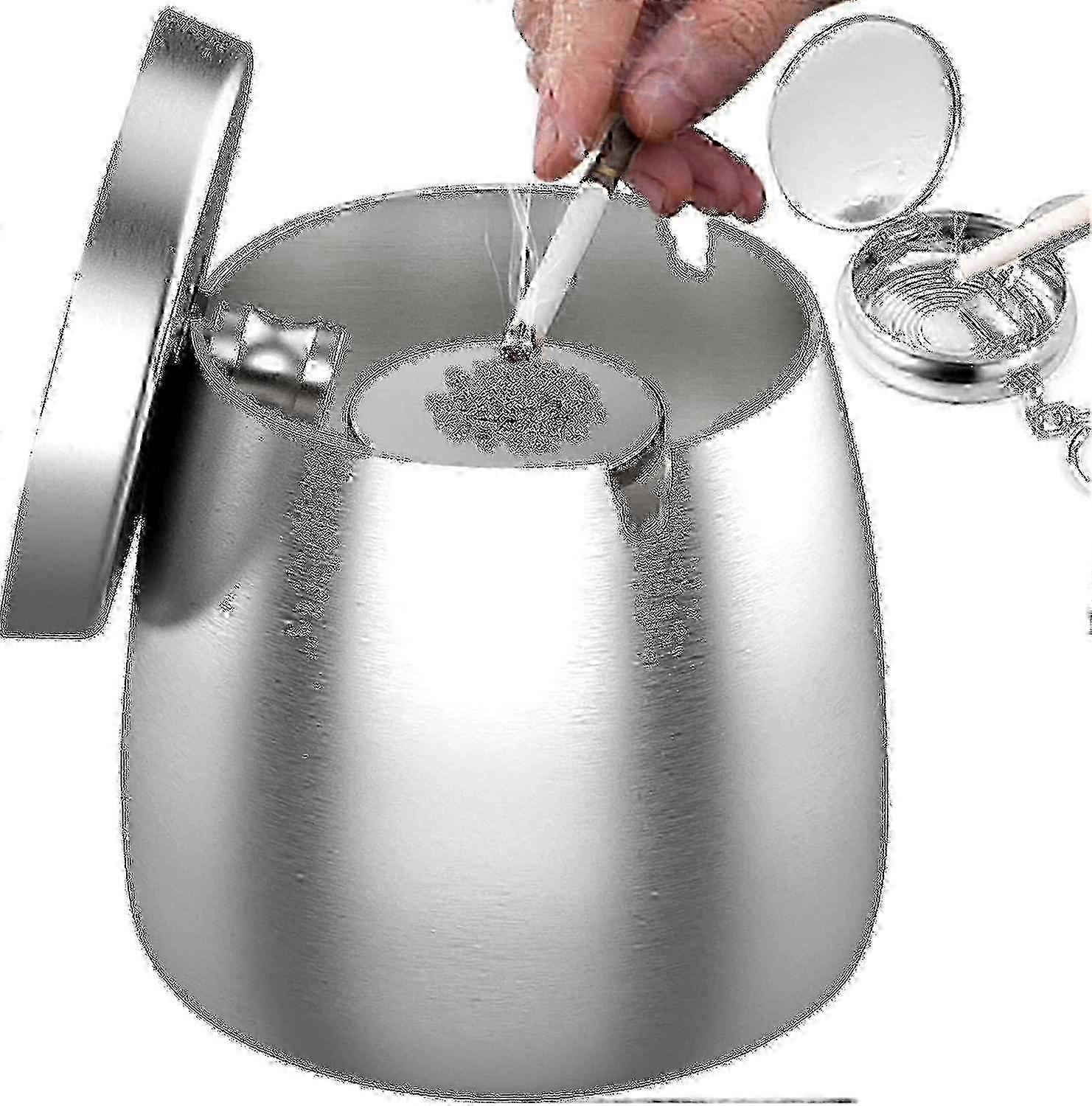w Windproof Stainless Steel Ashtray with Lid - Non-slip Base for Indoor & Outdoor Use Walkbee F24