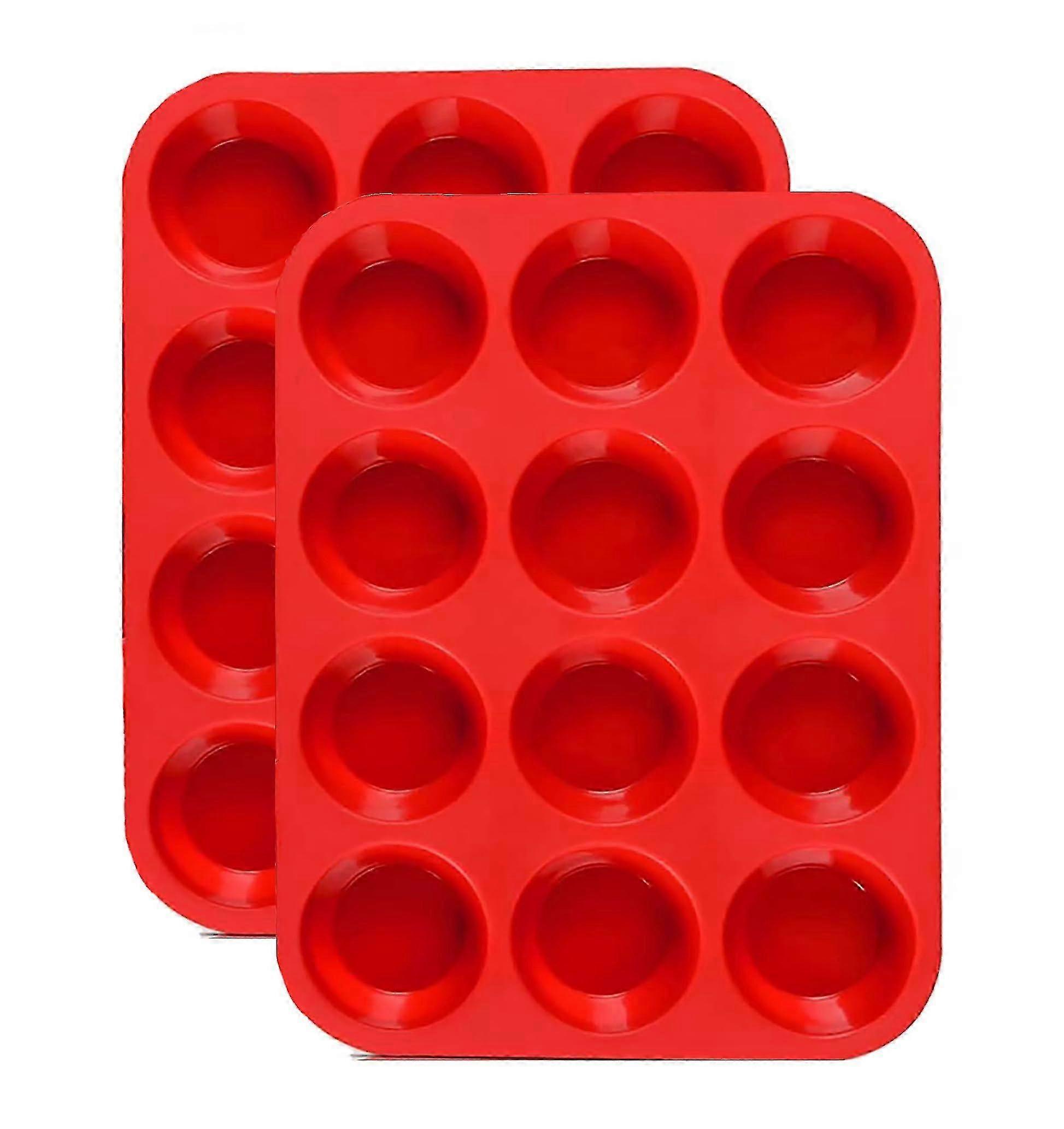 w 12-Cup Silicone Muffin Pan 2 Pack - Nonstick Silicone Molds for Baking Muffins, Cakes, Bread, Tarts - BPA Free