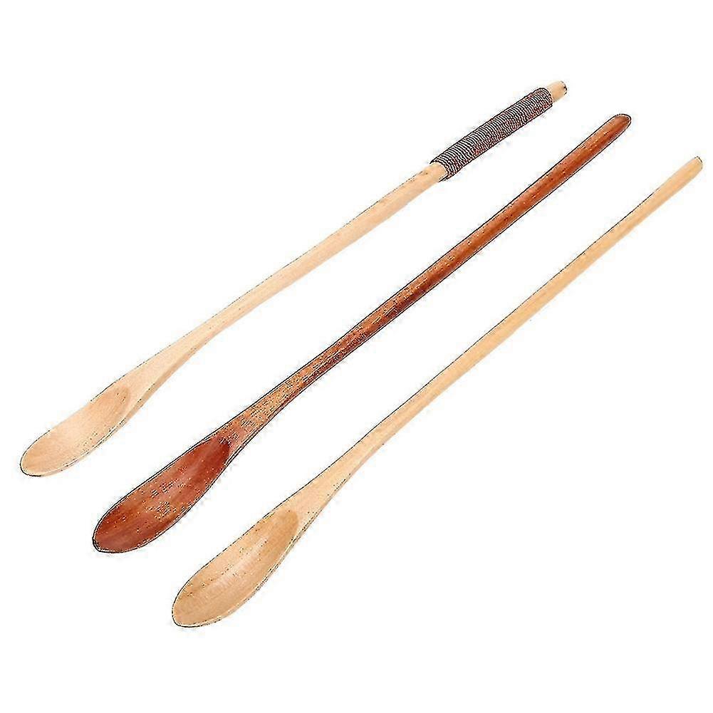 w 3Pcs Long Handle Wood Spoon Kit Coffee Milk Honey Mixing Stirring Spoon Kitchen Tableware