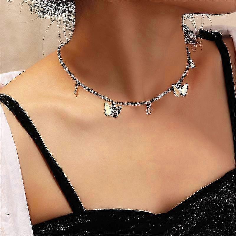 w New Fashion Butterfly Pendant Necklace for Women Double-Layer Charm Clavicle Chain Necklace Female Boho Vintage Jewelry Gifts