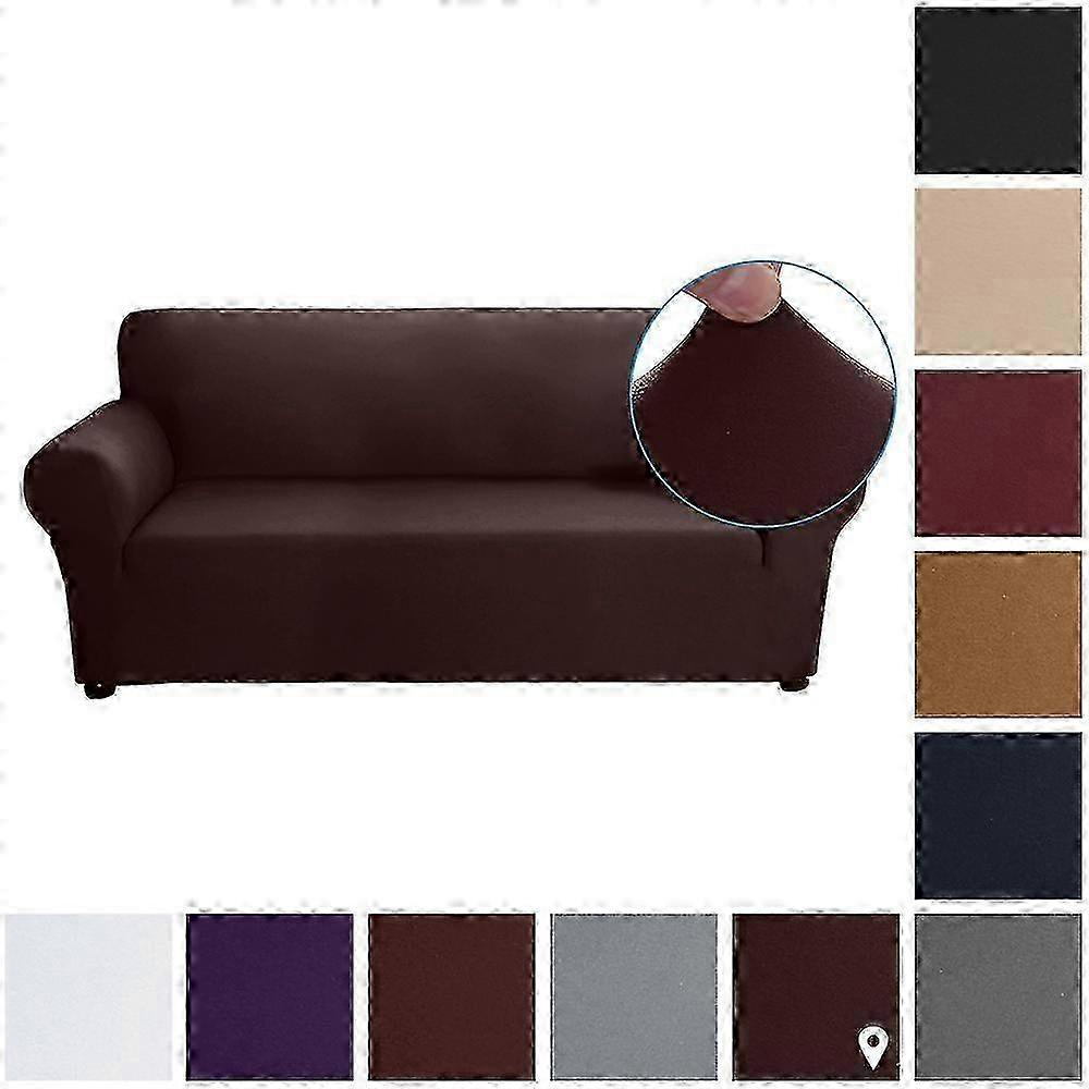 w Stretch Slipcover Milk Silk Fabric Anti-Slip Soft Couch Sofa Cover 3 Seater Washable for Living Room Kids Pets(Coffee)
