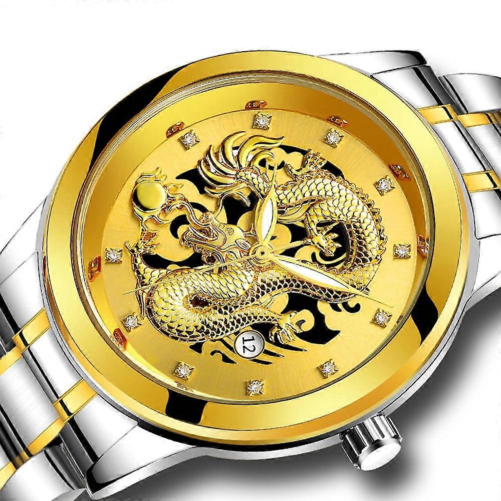 Quinlirra Watches for Women Mens Gold Dragon Sculpture Quartz Watch Luxury Men Steel Wristwatch Fashion Travel Essentials