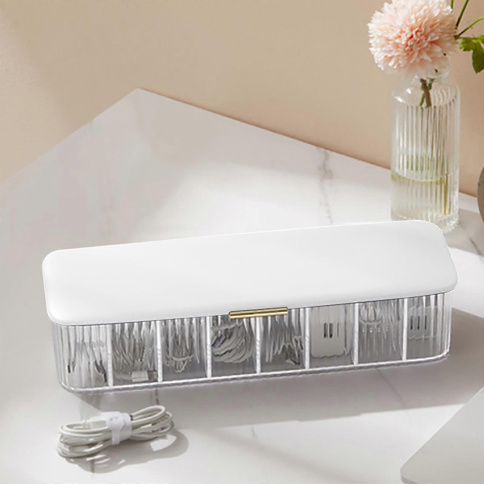 VALSEEL Transparent Cable Organizer Box with Lid, 8-Compartment Data Cord Storage for Easy Access, Compatible with Various Chargers & Devices