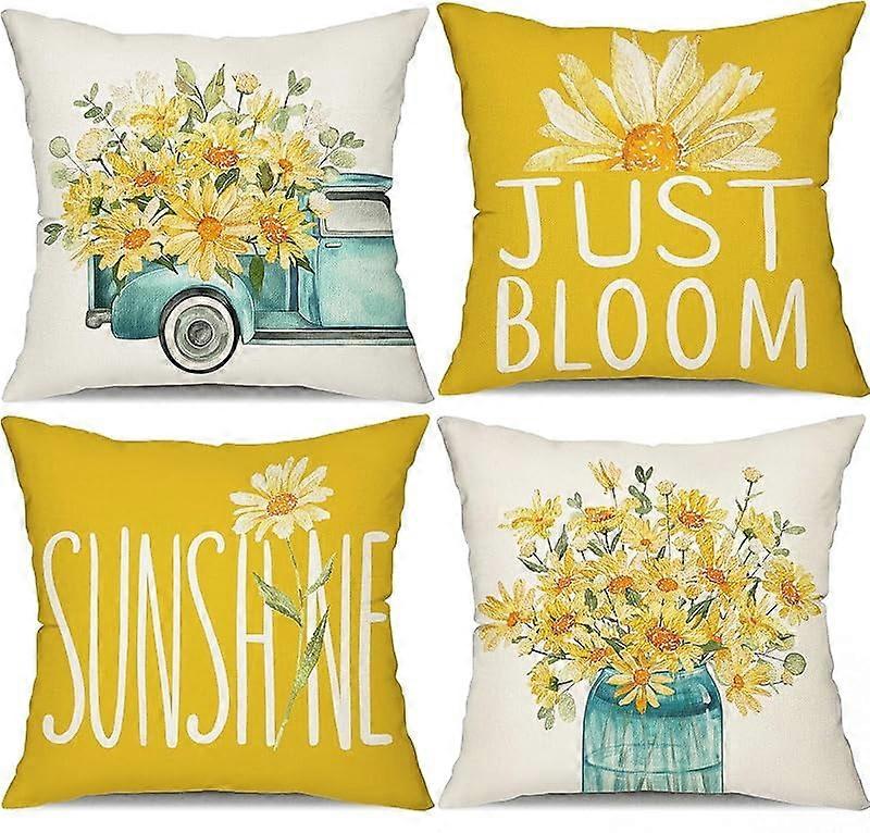 Summer Pillow Covers 18x18 inch Set of 4, Sunflower Vases Design, Yellow Throw Pillow Covers for Couch, Living Room, Outdoor Decor