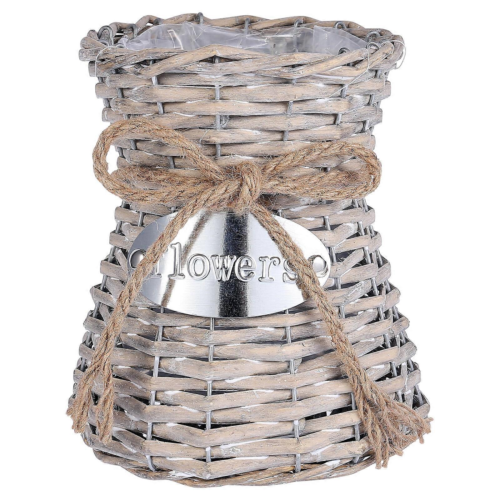 Guangmc Wicker Rattan Flower Vase French Vintage Hand-Woven Grey