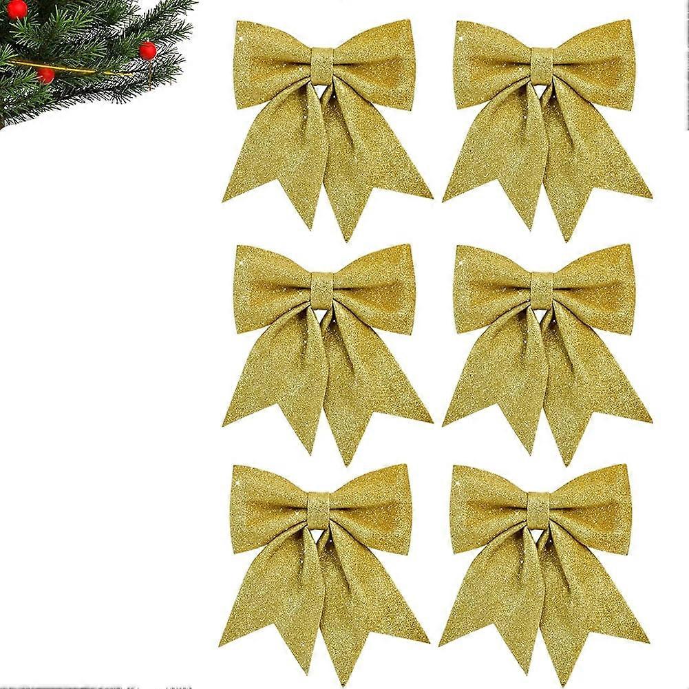 6pcs Shiny Silver Glitter Bows 5x5Inch for Gift Box, Christmas Baskets, Wedding Birthday Party Decor (Compatible with Christmas)