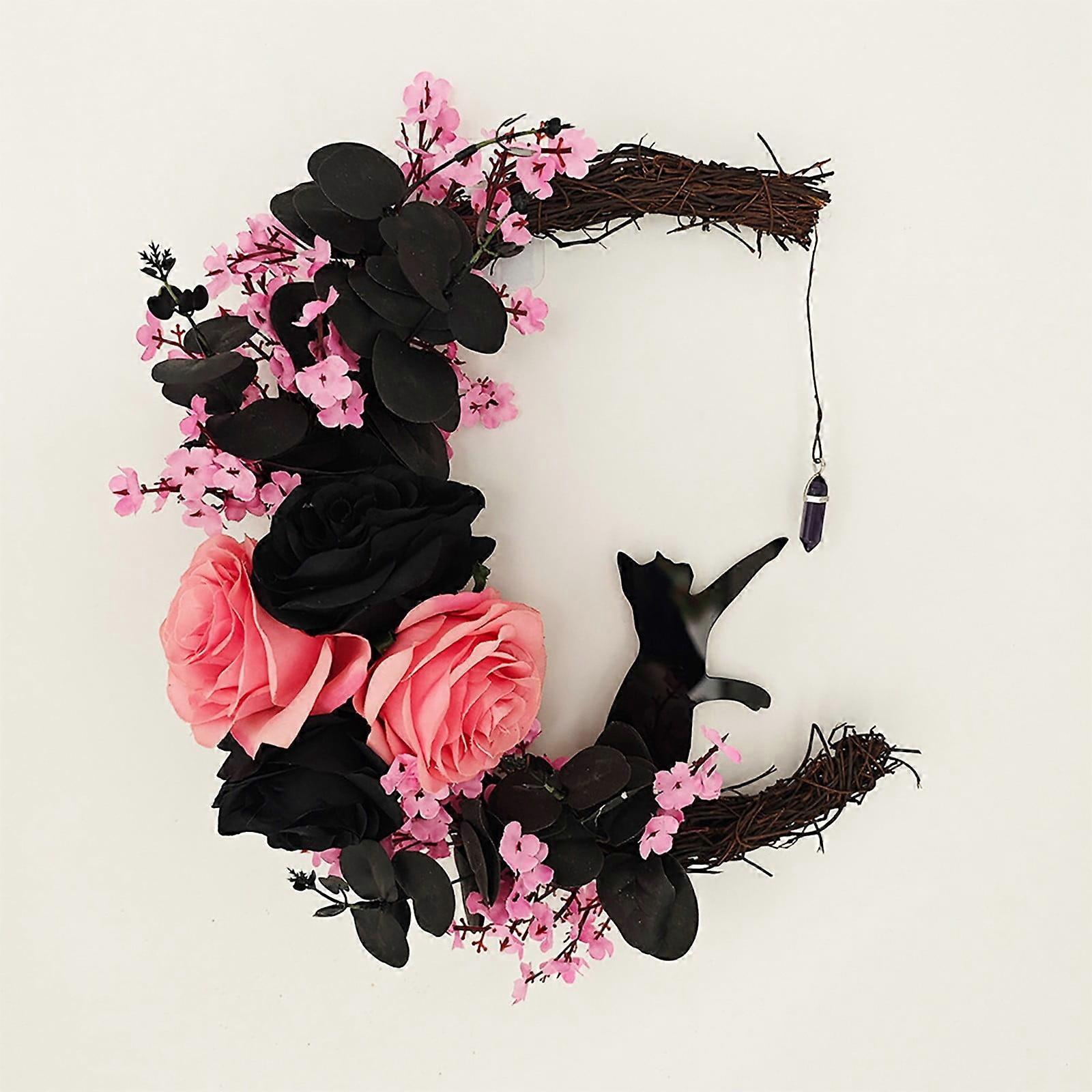 Moon Cat Wreath With Flowers And Charming Door Decor Moon Cat Home Decor Gifts Party Decorations For Cat Lovers