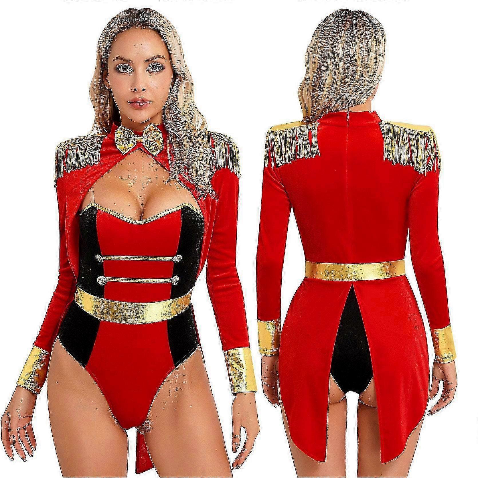 w Women's Ringmaster Costume Red Circus Costumes Halloween Cosplay Tassel Bodysuit for Stage Shows