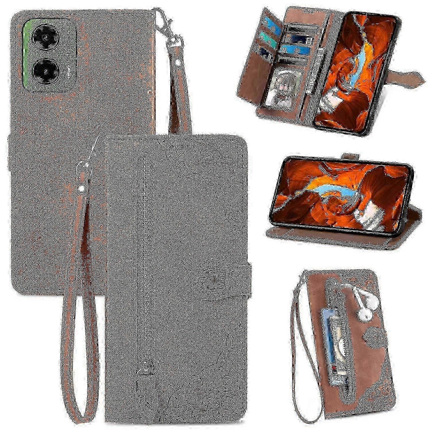 w Zipper Wallet Case for Motorola Moto G35 5G PU Leather Flower Imprint Phone Cover Protective Holder