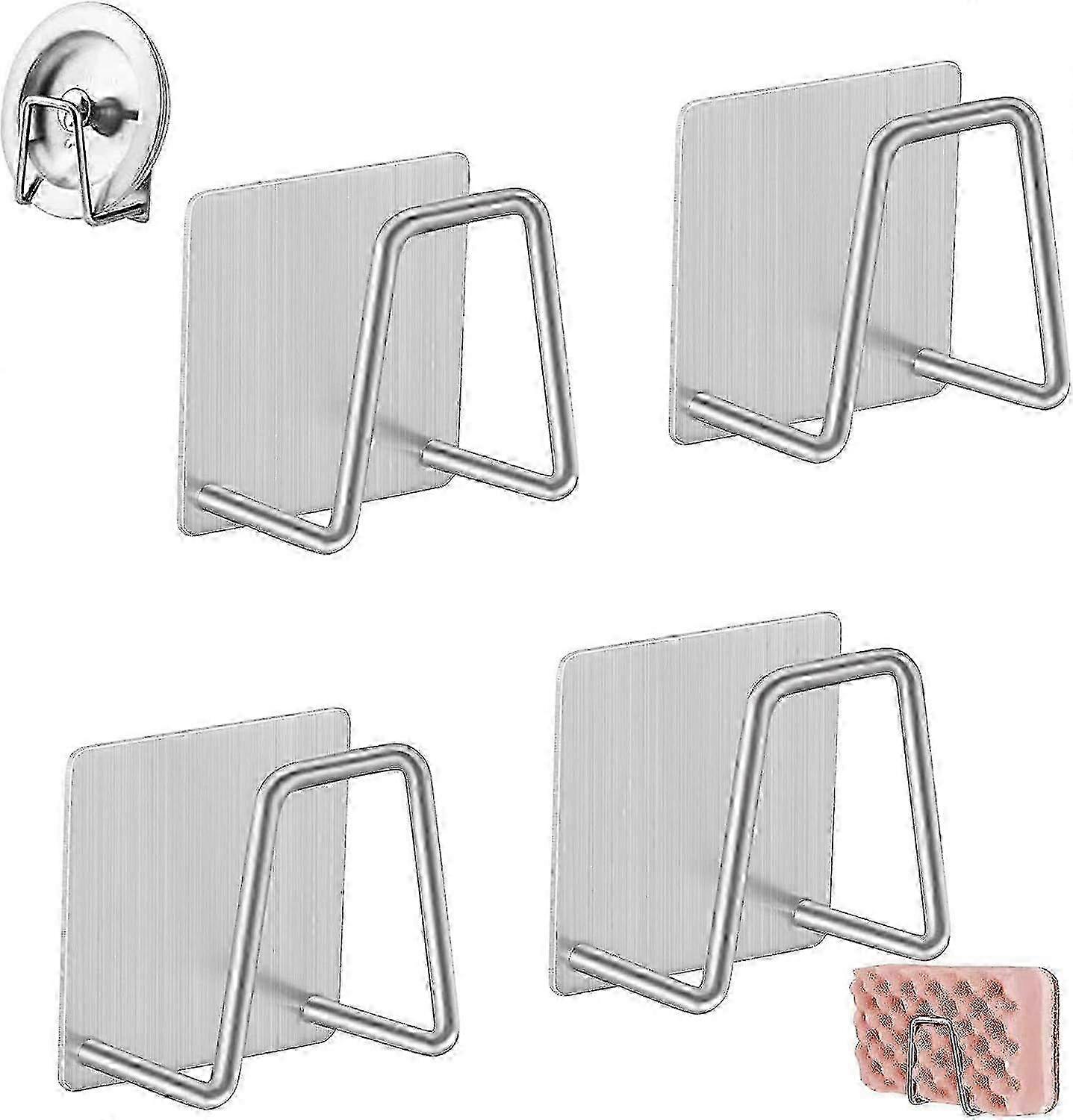 This product is a set of four stainless steel sponge holders that are durable and rust-proof. The holders have an open design with clean lines for quick draining and drying, allowing your sponge to dry quickly to stay clean. The sponge holder is a practical sink accessory that adapts to most kitchens. No drills or other tools are required for installation, so the wall is not damaged. Since the hooks are self-adhesive, no messy or complicated installation is required. Specifications Material: Stainless Steel Color: Silver Size: As shown Package Includes 4 x Stainless Steel Sponge Holders Features Durable and Rustproof: Made of high-quality stainless steel, these sponge holders are strong and long-lasting. Easy Installation: The hooks are self-adhesive, so no drills or other tools are required for installation. This means that the wall remains undamaged. Quick Draining and Drying: The open design with clean lines allows for quick drainage and drying of the sponge, which helps keep it clean. Adaptable: These sponge holders adapt to most kitchens and can be used in various places around the sink. Note: Before installation, wipe dust and water on the sink with a dry cloth or paper towel to ensure that the surface is clean and dry. Remove the red protective layer on the back and press firmly when inserting to ensure strength. Wait 24 hours after installation. Note: Due to the light and screen setting difference, the item's color may be slightly different from the pictures. Please allow slight dimension difference due to different manual measurement.