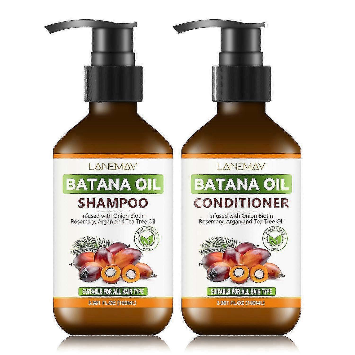 Elevate your daily hair care with batana oil hair growth shampoo and Conditioner. it can fortifies hair follicles, preventing breakage for a revitalized start, and remove scalp impurities, strengthen roots, and nourish for healthier hair growth. Batana Oil Hair Growth Shampoo and Conditioner set formula cotain Onion biotin, rosemary oil, and argan oil. This powerful trio repairs, hydrates and smooths hair, leaving hair soft, shiny, and rejuvenated. Sustained Luster and Hair Health: Exude confidence with hair that radiates vitality. Our shampoo, enriched with Biotin, diligently preserves the luster and overall health of your hair, ensuring it maintains a vibrant appearance every day. Get thicker healthier hair with every wash. This gentle yet effective formula is suitable for curly, straight, damaged, colored, wavy hair, catering to Women and Men of all ages. Apply the shampoo to wet hair, massage gently, and rinse thoroughly-repeat if needed. Follow with the conditioner along the length of hair, leave it on for 3-5 minutes to deeply nourish and hydrate, then rinse. Note: Due to the light and screen setting difference, the item's color may be slightly different from the pictures. Please allow slight dimension difference due to different manual measurement.