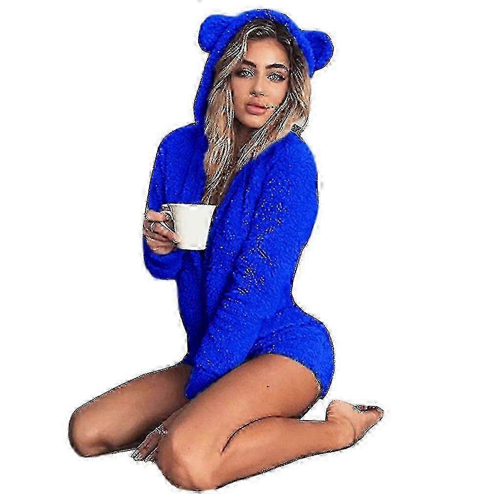 w Womens Teddy Bear Hoodie Romper Playsuit Fluffy Zipper_CH