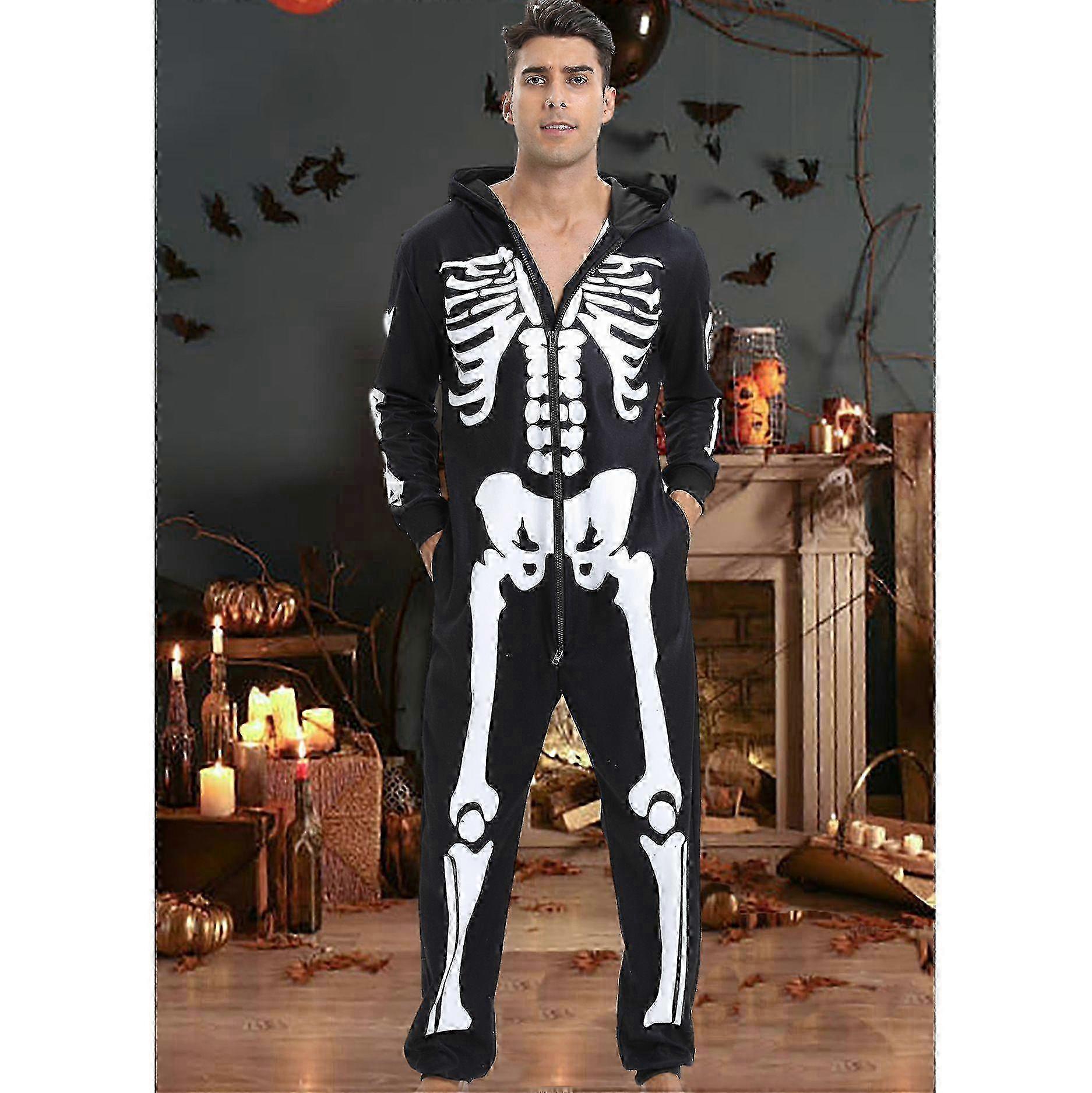 w Men's Halloween Skeleton Onesie Pajamas Black Cosplay Homewear