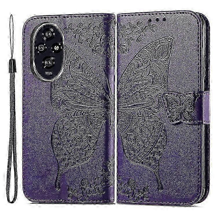 w Compatible For Honor 200 Pro 5G Case Wallet PU Leather Phone Cover Imprinted Butterfly Flower