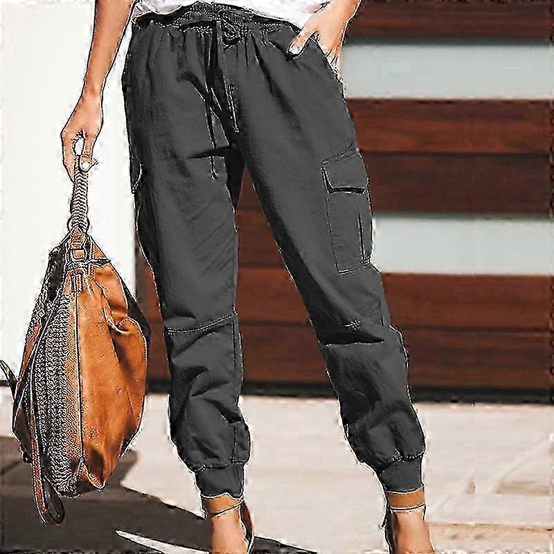 w Cool Girl Elastic Cargo Pants Waistband Pants Stylish Solid Color with Pocket Thread Hem Pants for Women