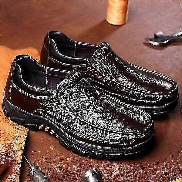 w Comfy Genuine Cow Leather Casual Men Shoes Seniors Elderly Shoes Business Soft Loafers