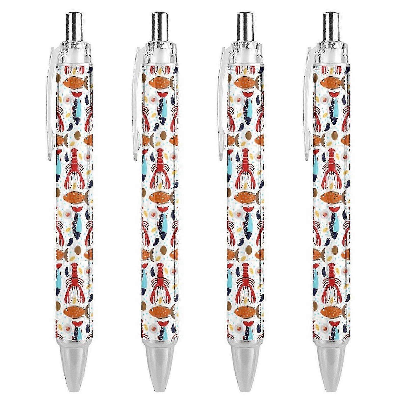 w Animal Red Lobster And Lovely Fish Print Retractable Ballpoint Pen Portable Black Ink Ball Pen Work Pens for Office Stationery Supplies Gifts