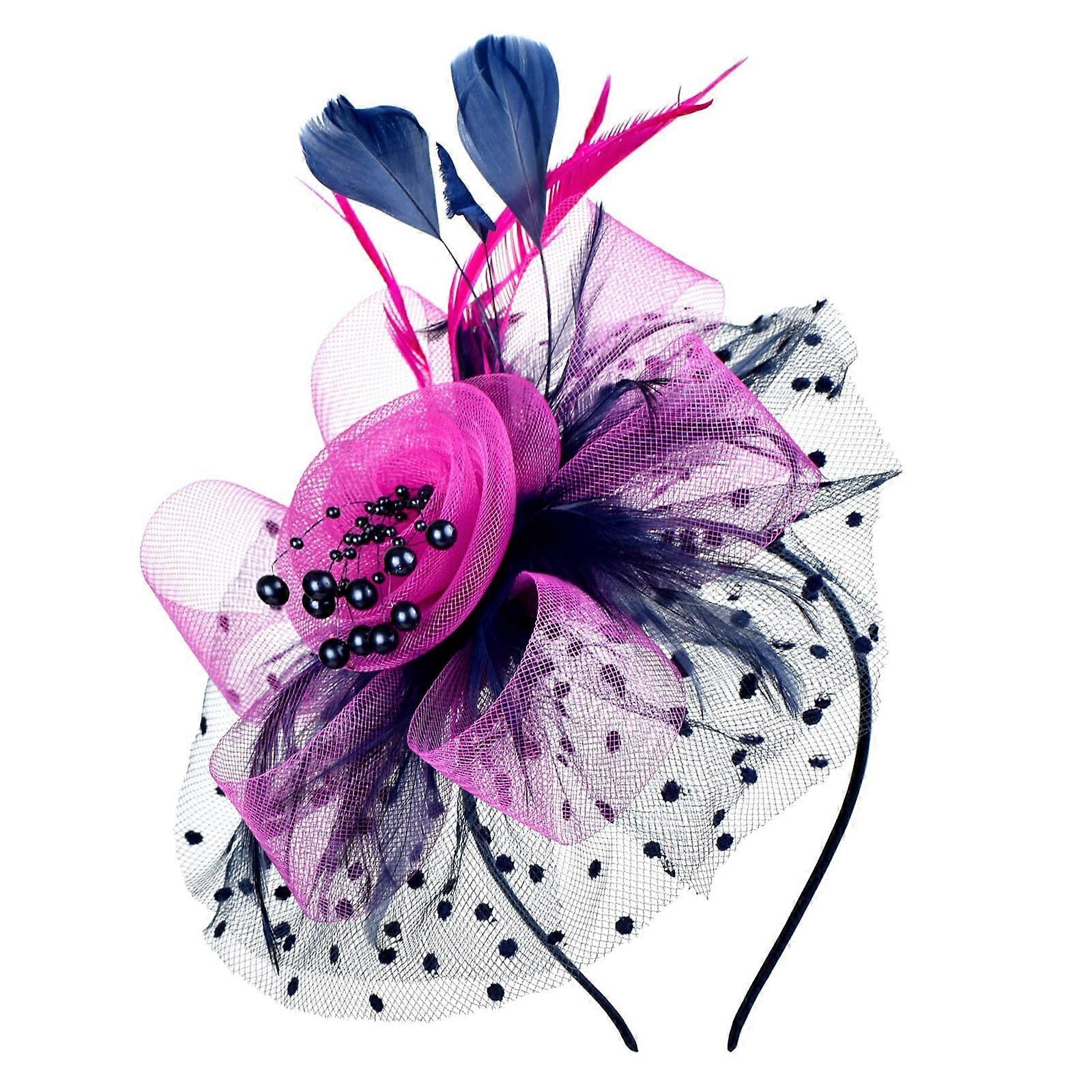 yuehao accessories hat for women wedding flower mesh feathers hair clip tea party headband heardband navy
