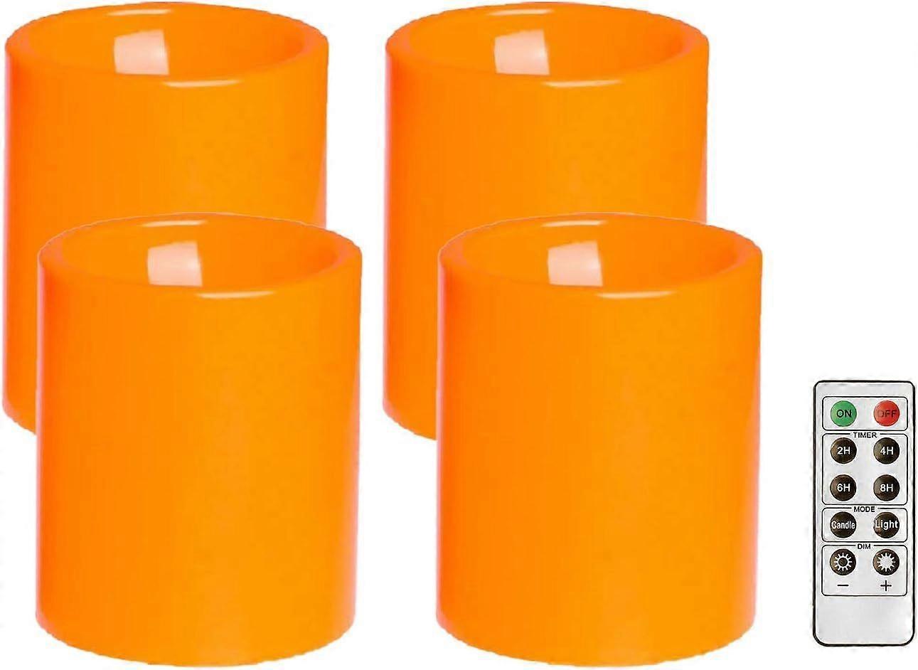 Flameless plastic flashing LED candles, 4 pcs orange battery-powered fake candles, with remote timing function, autumn,