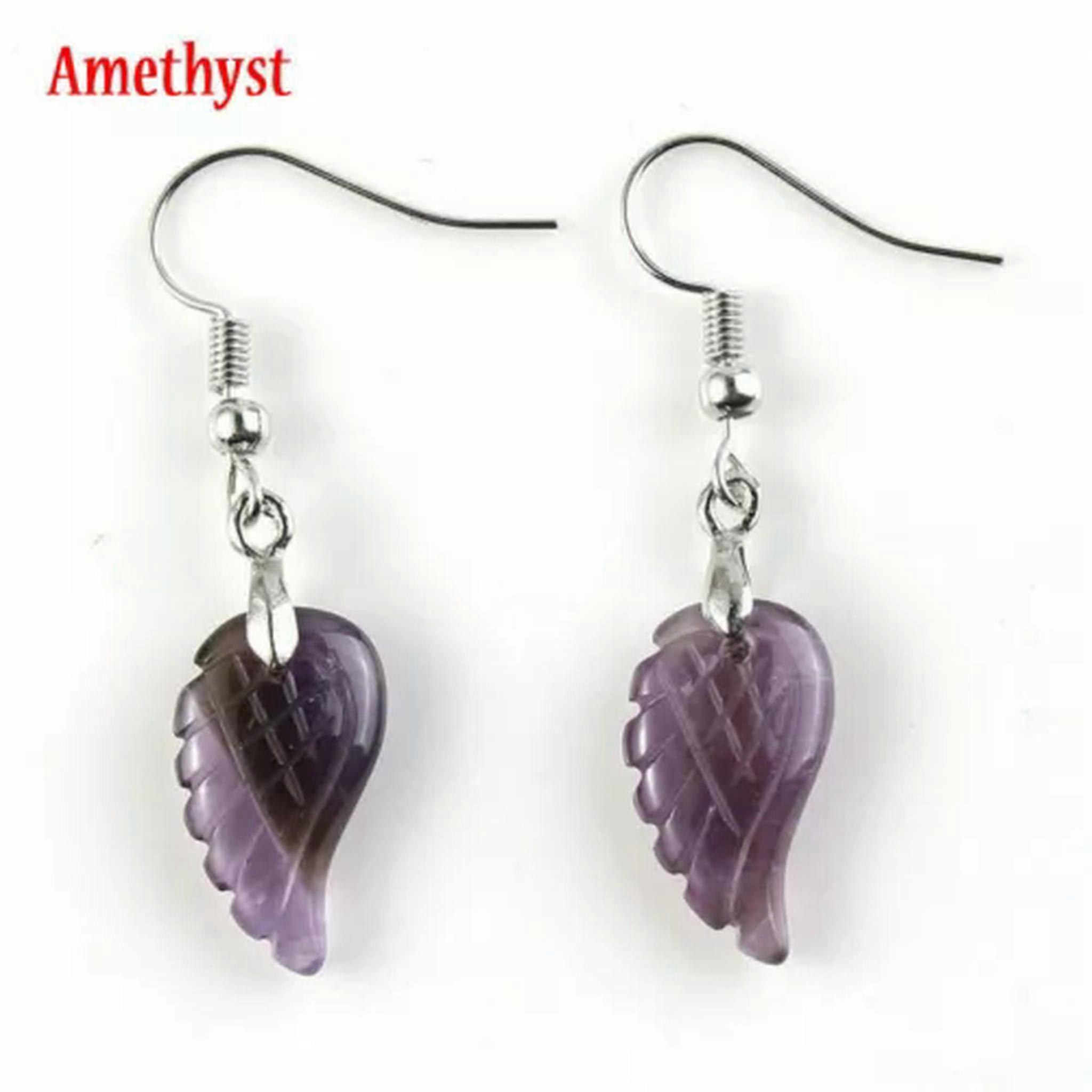 RSAMD Natural Crystal Angel Wing Gemstone Earrings Quartz Chakra Healing Stone Jewelry-Amethyst