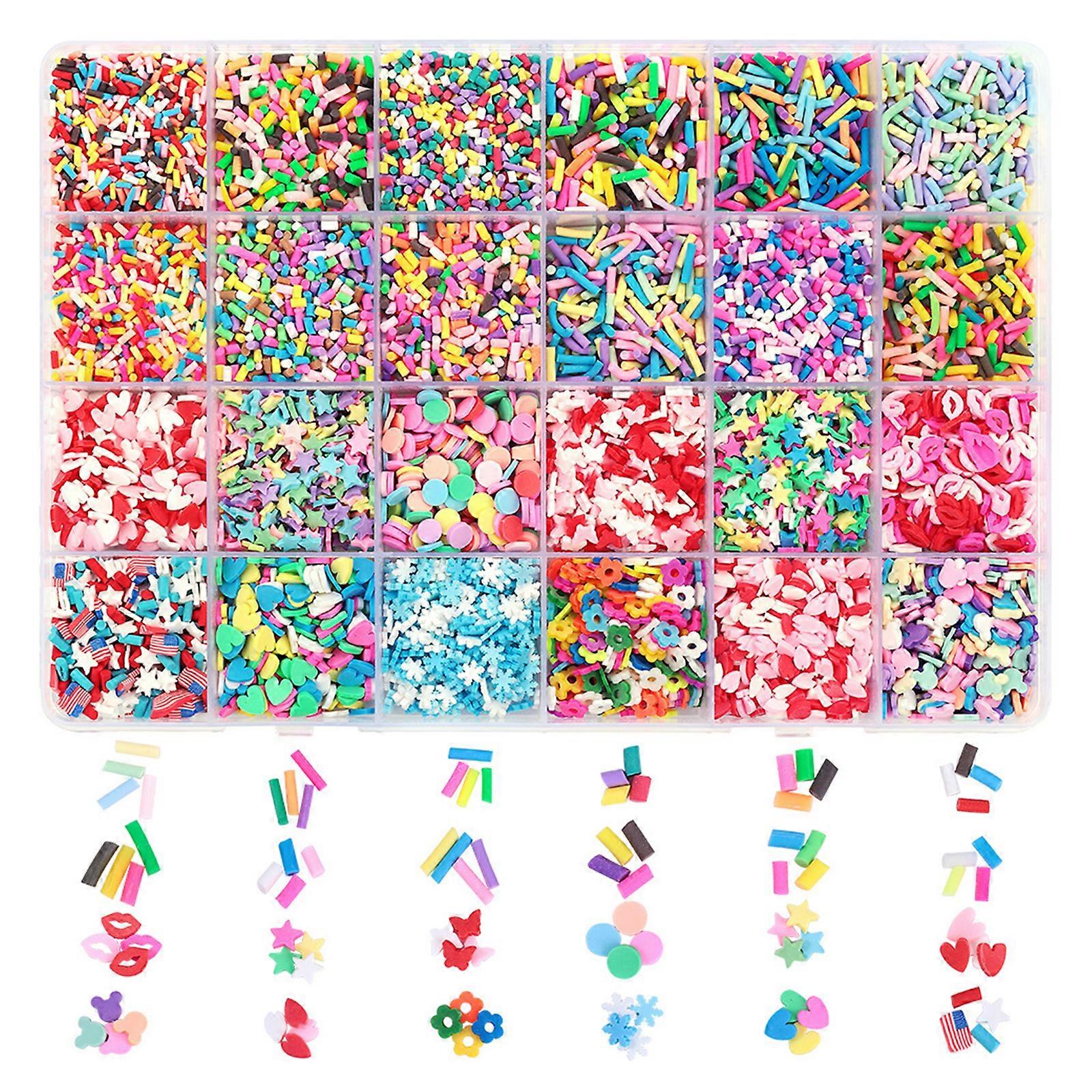 24 Grids Heart Nails Art Charms Fruit Slices Nail Charms Soft Clay Nail Art Supplies for Acrylic Nails Decoration Multicolor