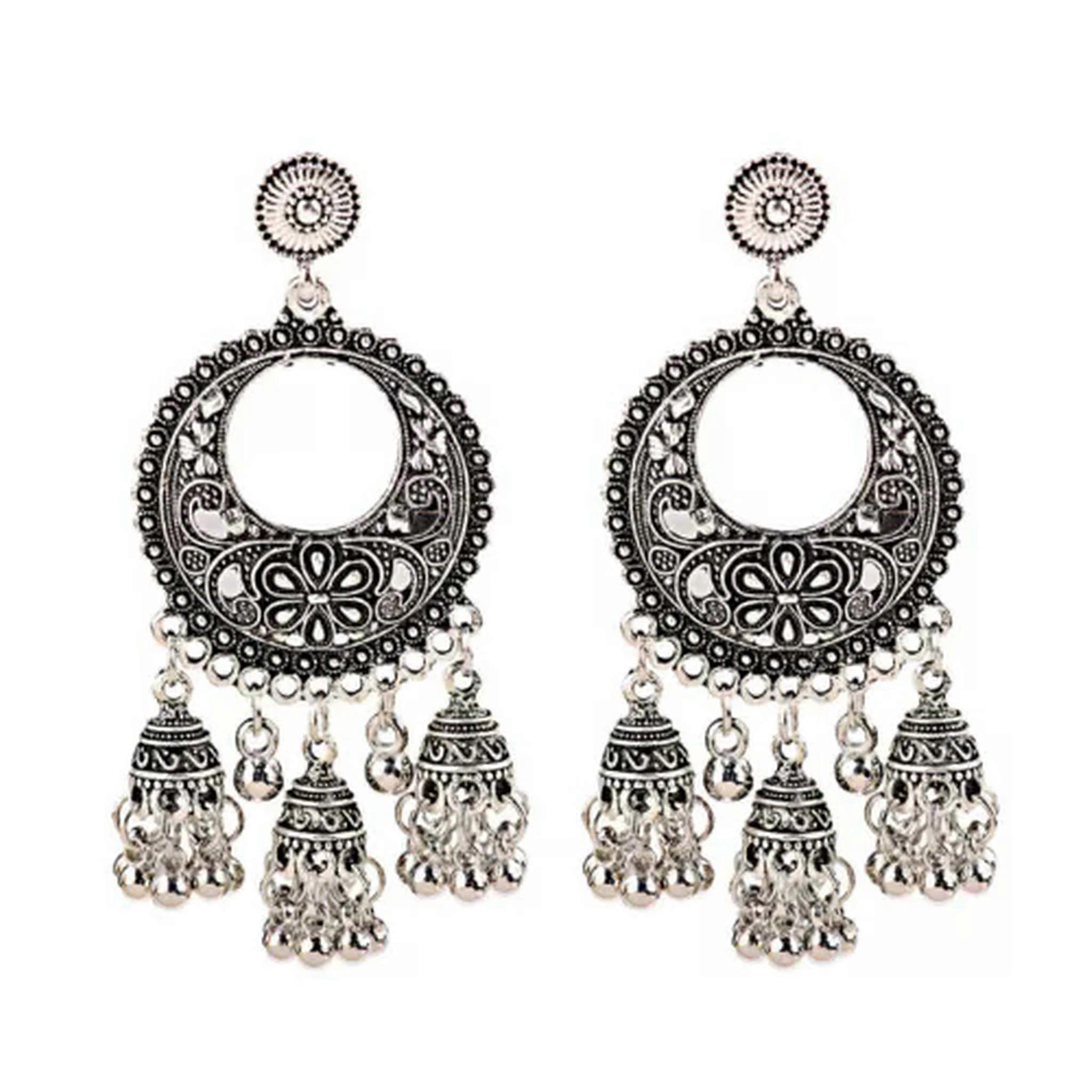 RSAMD Women's Bohemia Boho Drop Dangle Jhumka Wedding Earring Indian Jewelry Gift-Silver-3