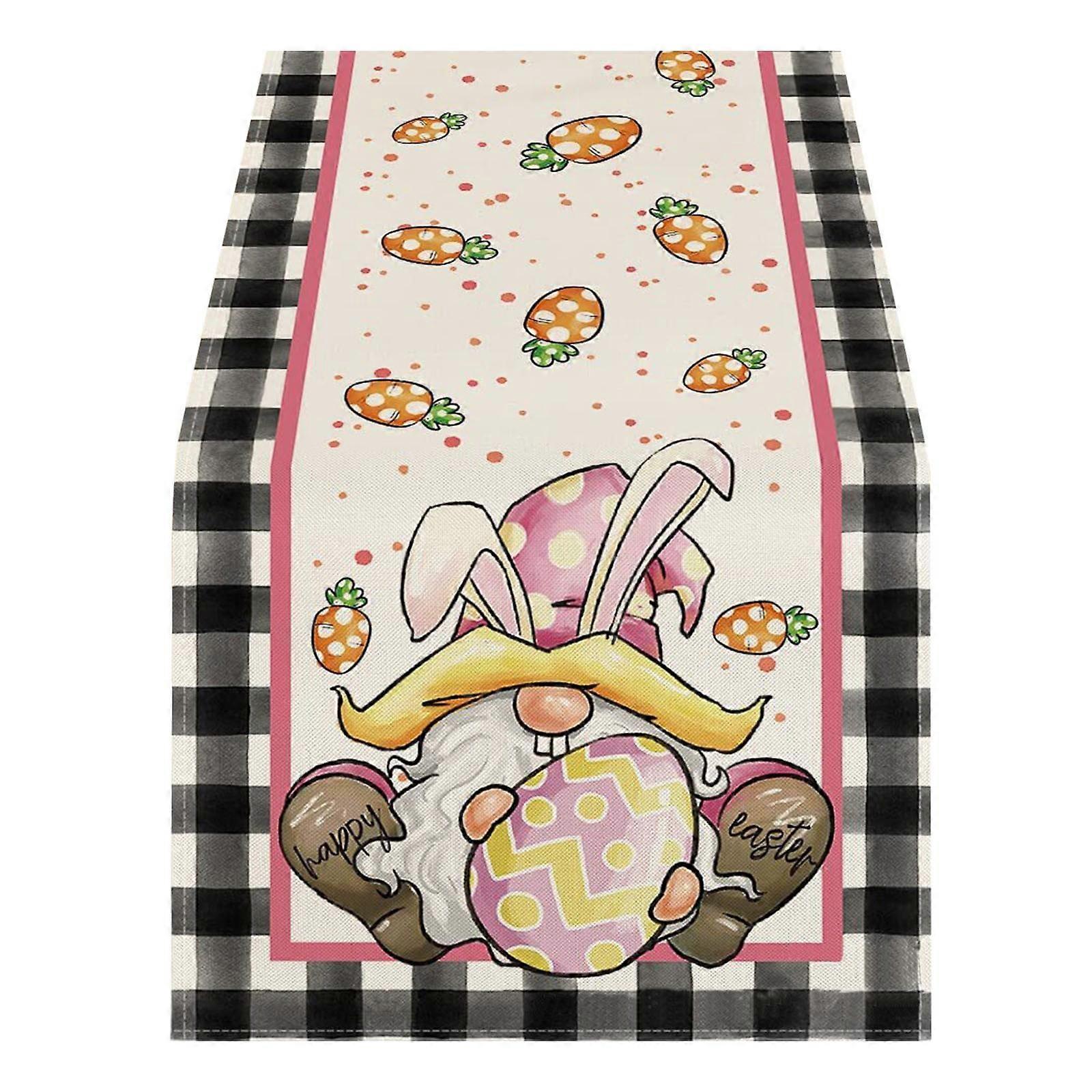 Easter Table Runner Vintage Bunny Egg Print Linen Flag, Holiday Home Decor, Compatible with Easter Festival