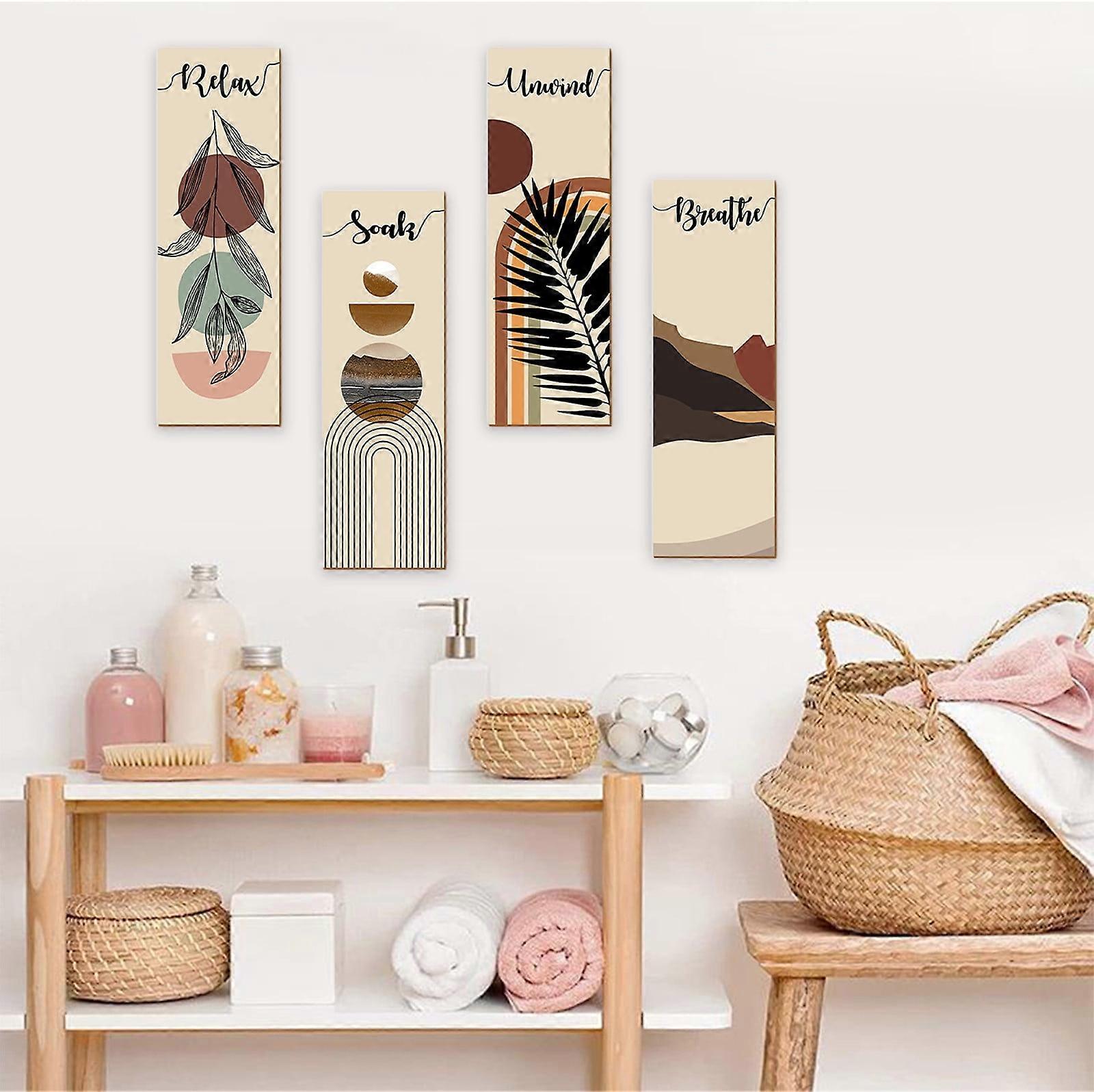 4 Pcs 3.93*11.81 Inch Rustic Wooden Wall Signs, Farmhouse Wall Decor for Living Room Bedroom, Elegant Atmosphered