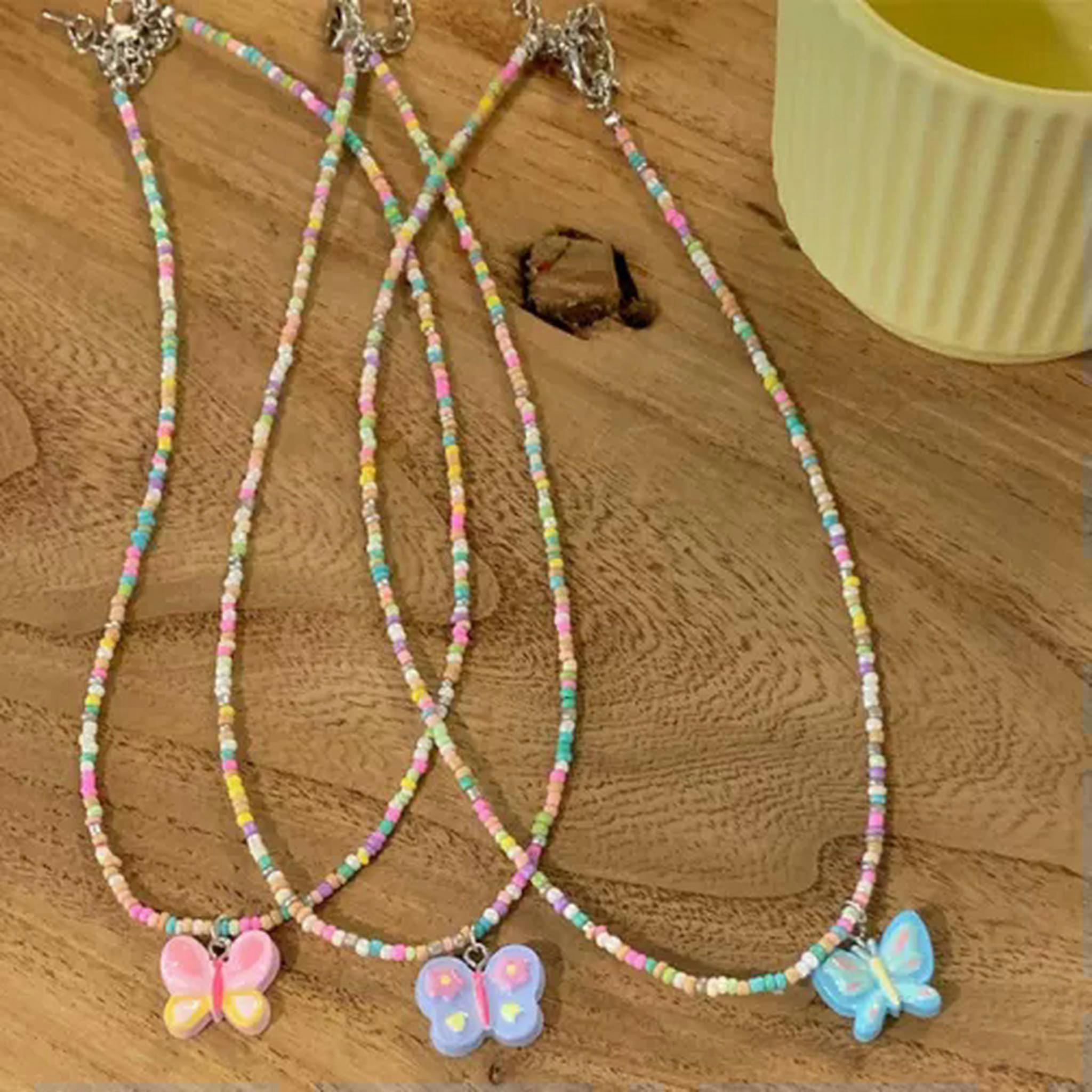RSAMD Boho Beads Colorful Acrylic Butterfly Pendant Necklaces For Women Y2K Chokjo-Pink-