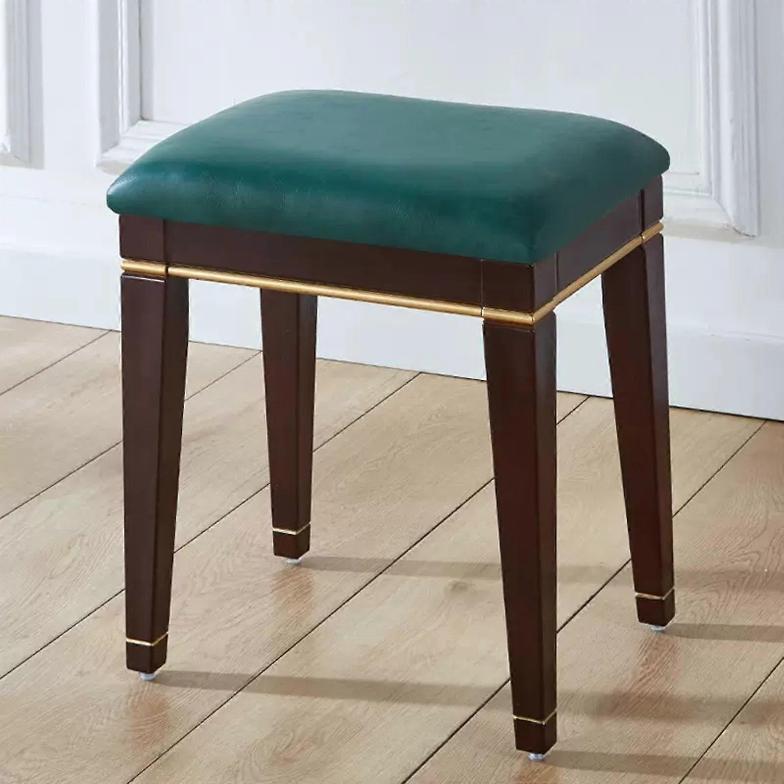 Elegant Retro Makeup Stool, Softly Padded Vanity Chair With ABS Legs, Green Color, Walnut Legs, Max Weight 110kg