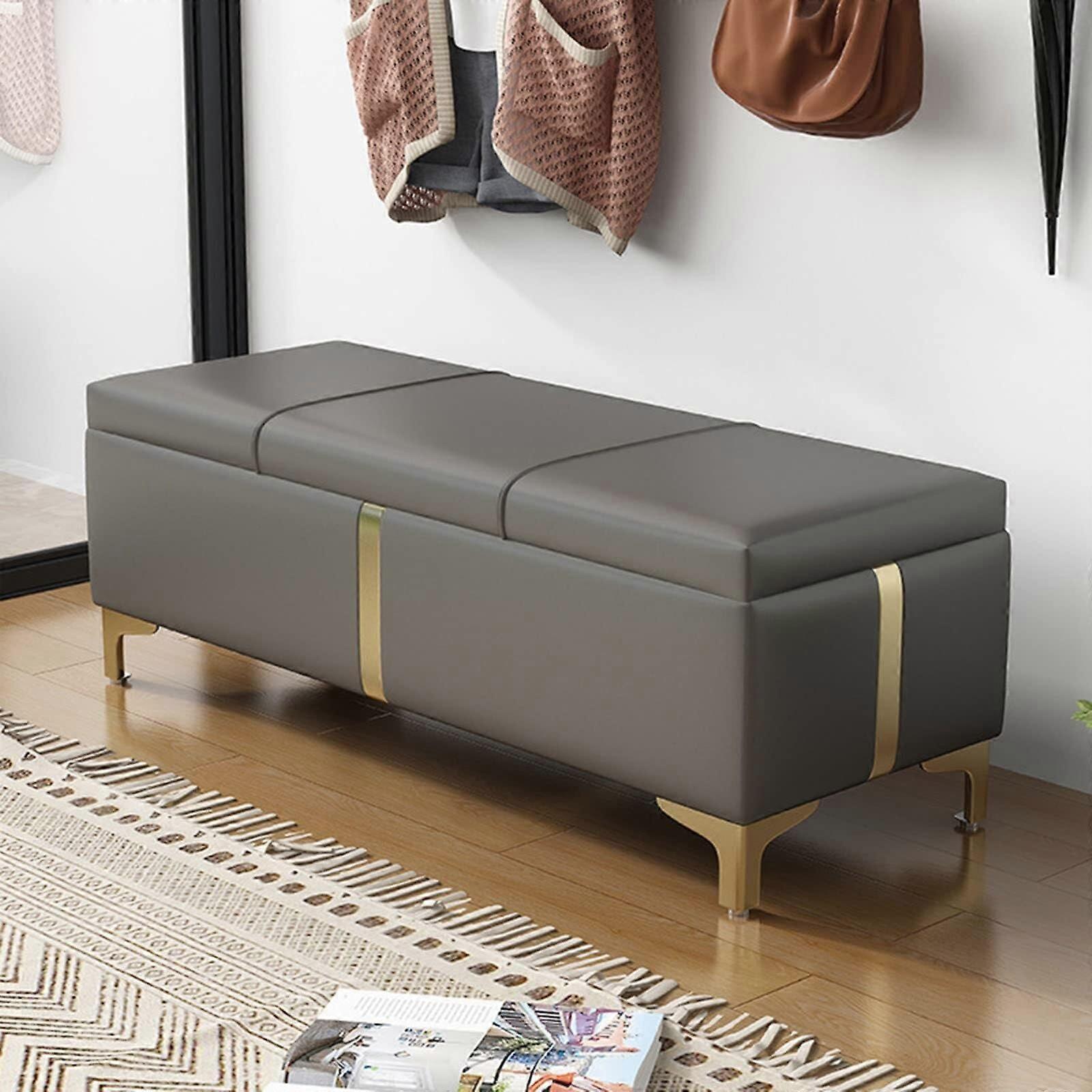 Leather Upholstered Storage Ottoman Bench with Metal Legs for Bedroom, Living Room, Entryway 40x39x40cm