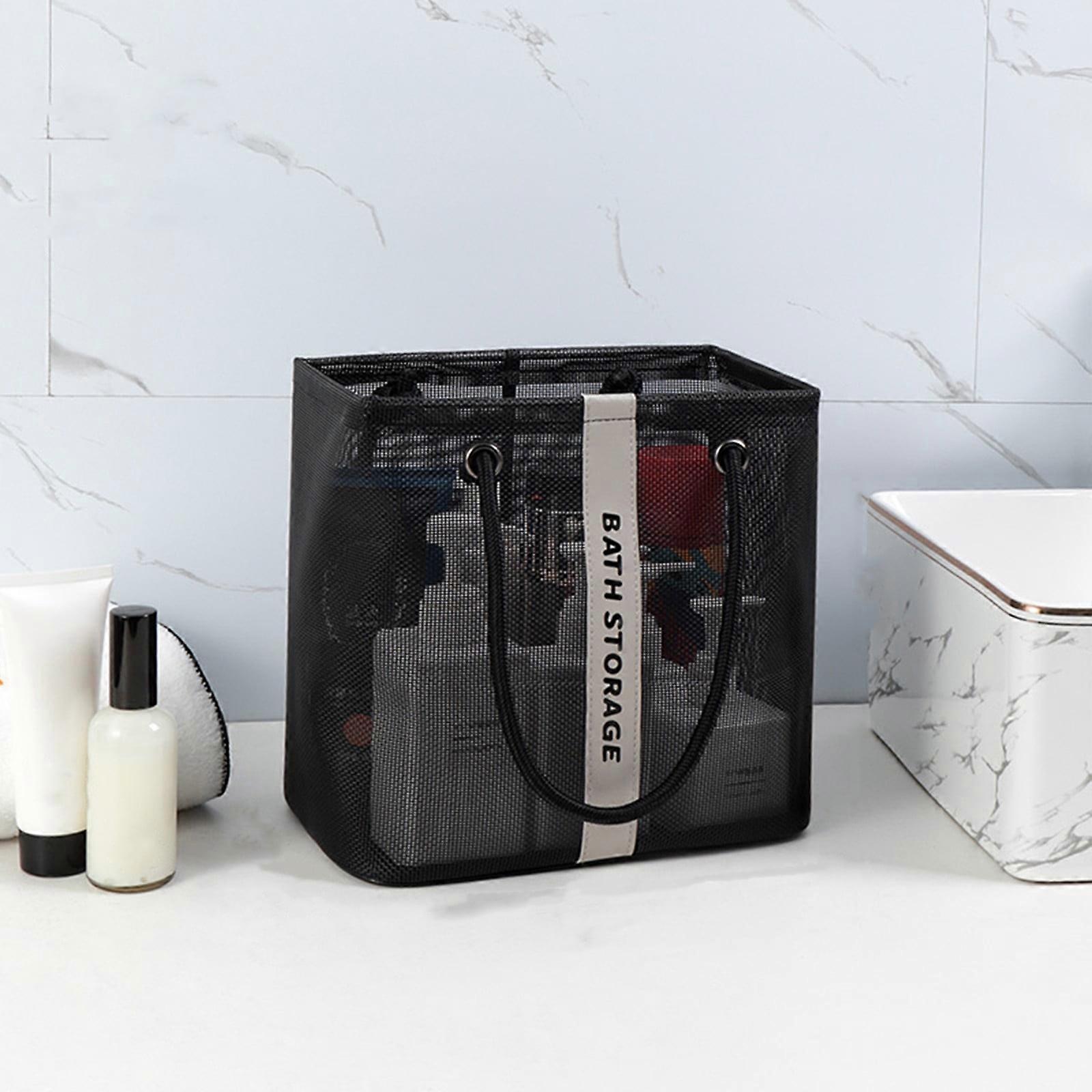 Portable Mesh Shower Caddy, Quick Dry Tote Bag, Hanging Toiletry Bath Organizer for College Dorms, Gym, Swimming, Beach, Travel (Black)