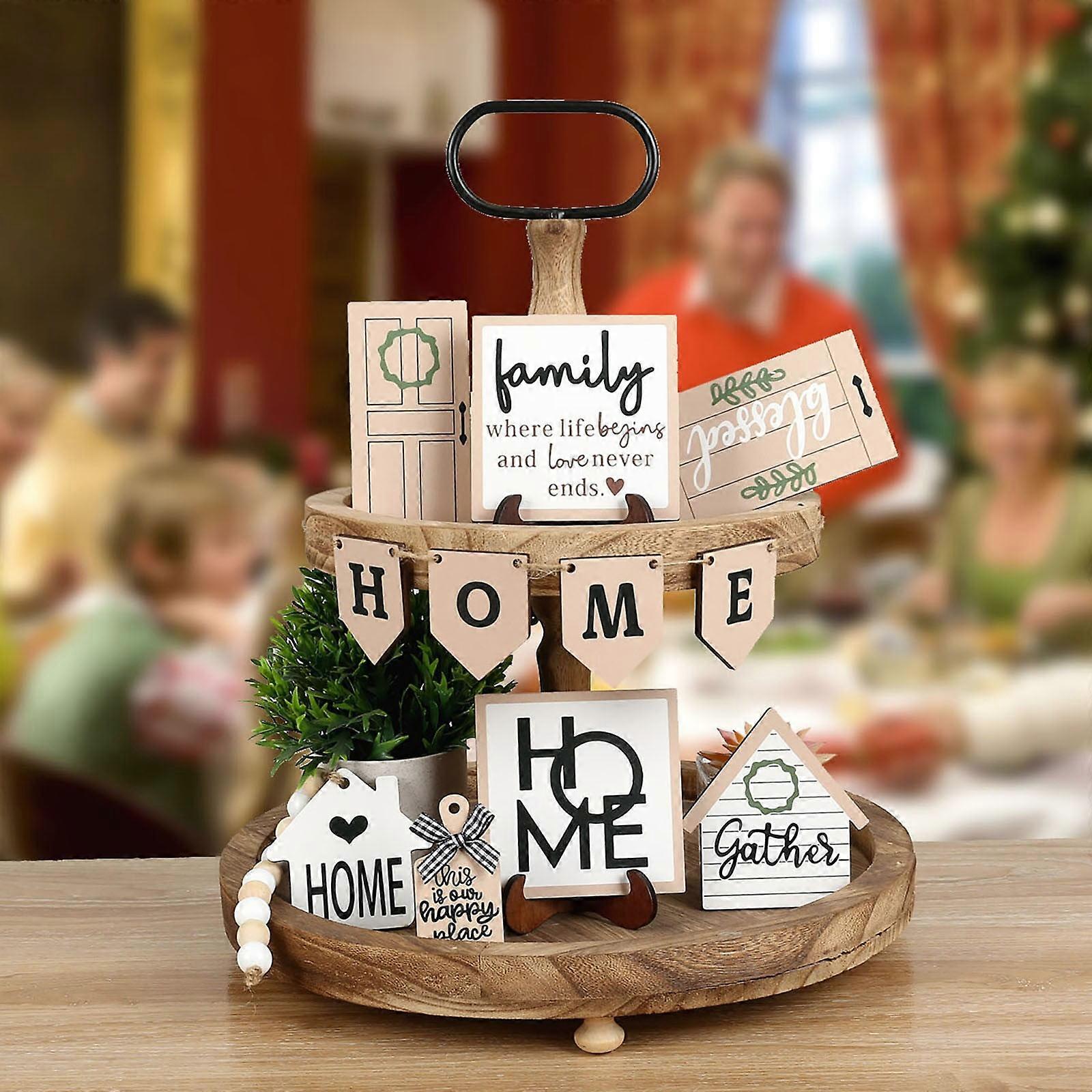 YiFudd Layered Tray Decoration For Farmhouses Wooden Signs Sweet Home Beaded Family Kitchen Table Rack Ornaments