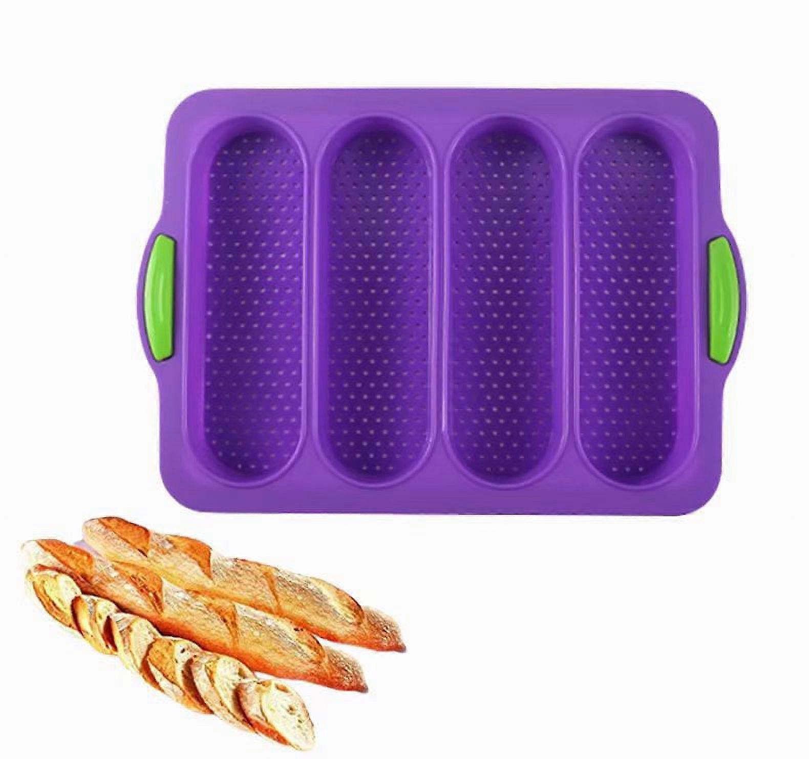 Mini Loaf Pan, Non-Stick Silicone Mold for Baking Bread French Bread Baking Pan, 4 Wave Loaves Breathable Bread Pans for Baking(Purple)