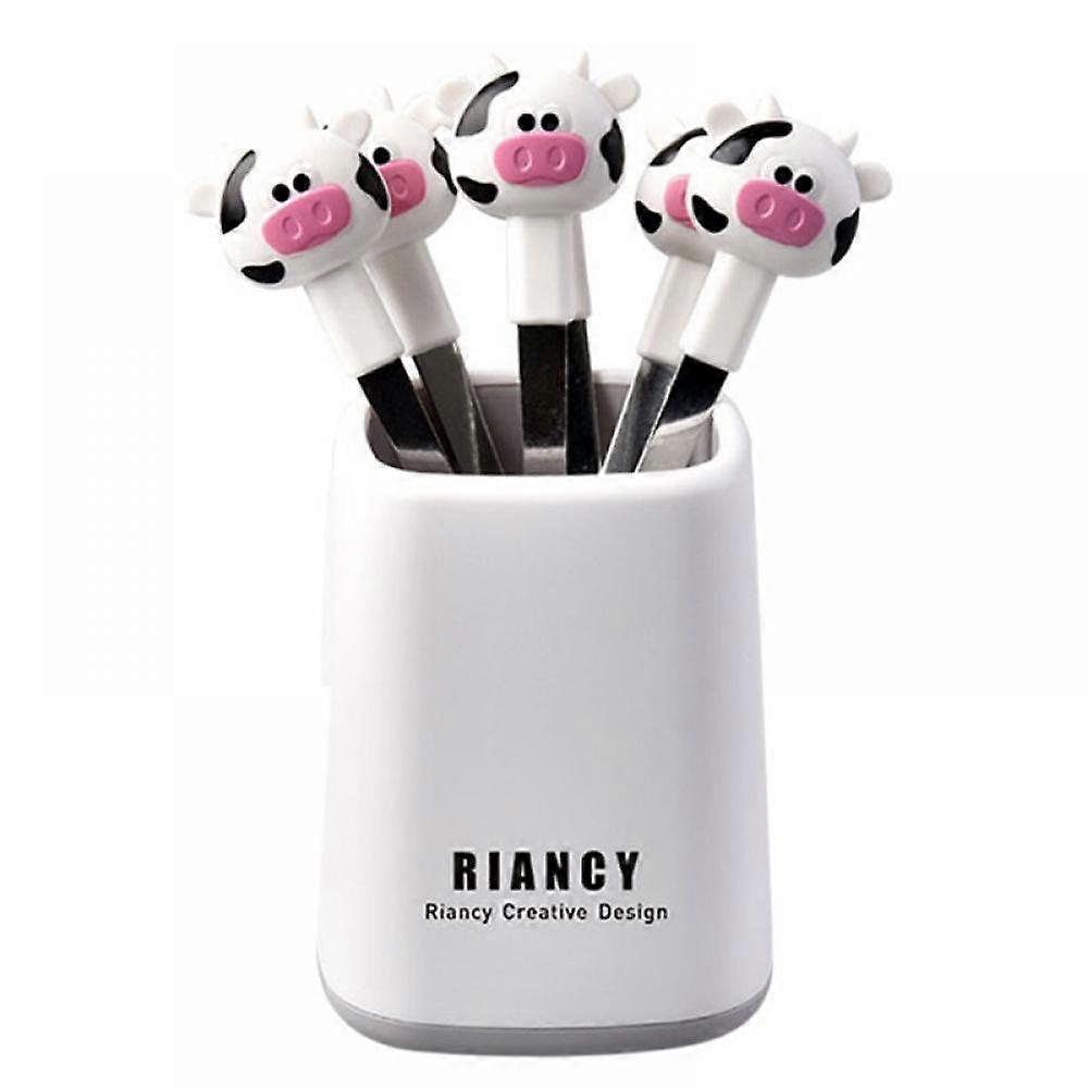 Fruit Fork, Cute Calf Set of 6 Fruit Forks with Holder Stainless Steel Food Pick Forks for Kids Home