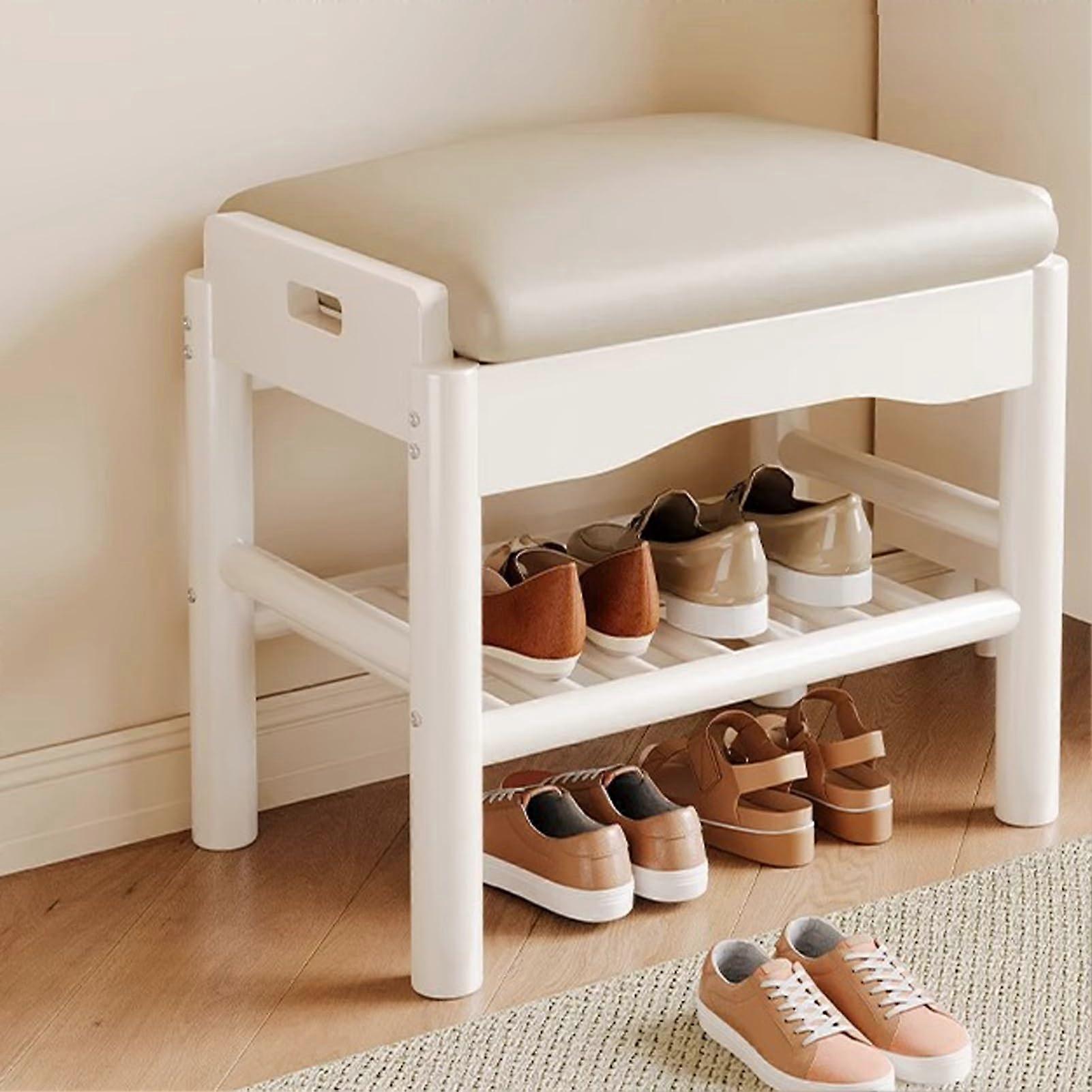 Entryway Shoe Storage Bench with Solid Wood Frame and Leather Seat Cushion for Hallway (White 80x30x40cm)