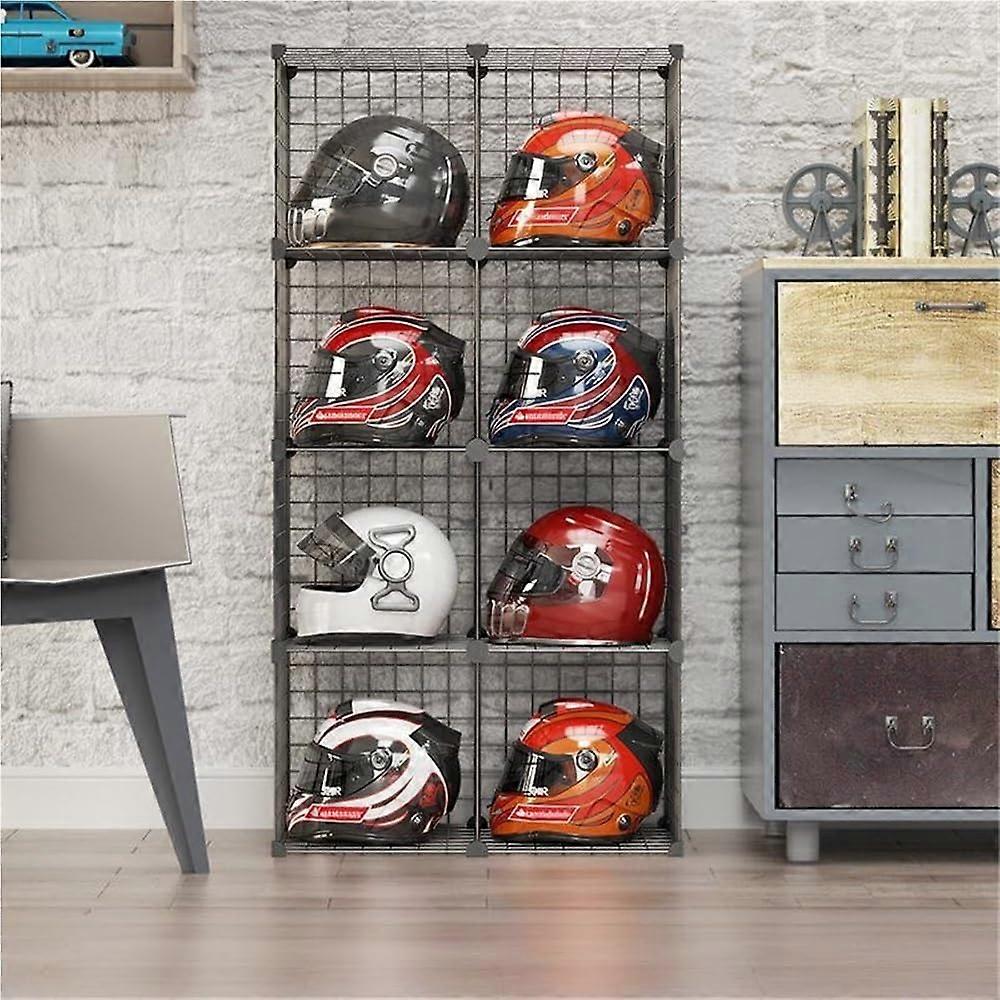 Motorcycle Helmet Rack with Stackable Wire Cube Shelves for Floor Storage and Closet Organization