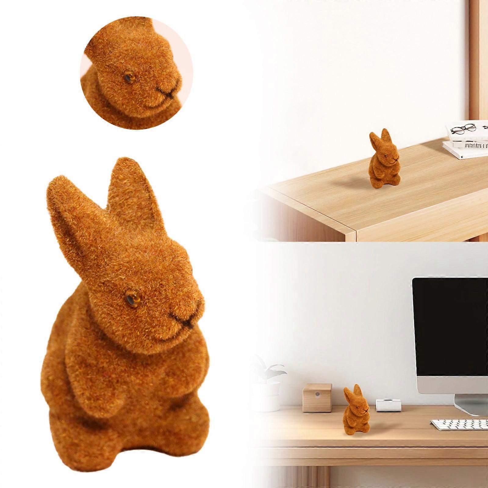 Yakbaofuo Easter Bunny Resin Ornaments, Flocked Mini Bunnies Figurines for Home, Bedroom, Garden Party Decoration, Brown Statue