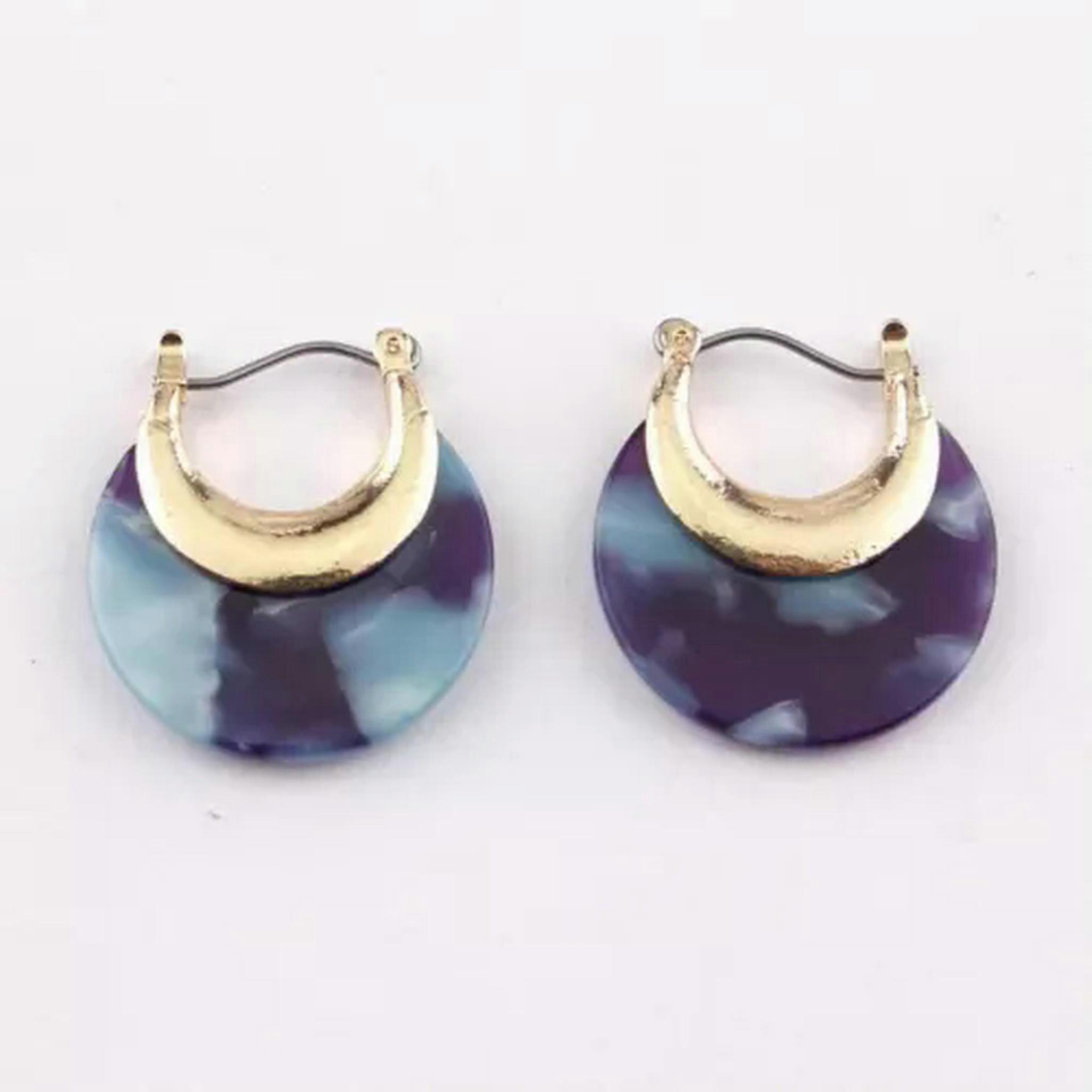 RSAMD New Fashion Round Tortoise Shell Leopard Acrylic Hoop Earrings For Women Jewelry-Gold Blue