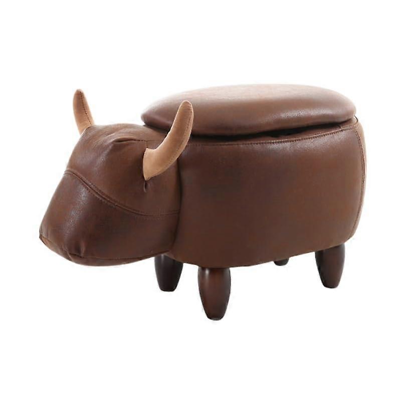 Storage Ottoman Footstool with Wooden Legs, Upholstered Animal Design for Living Room, Bedroom, Entryway, Brown 14.2'x13'x14.2'