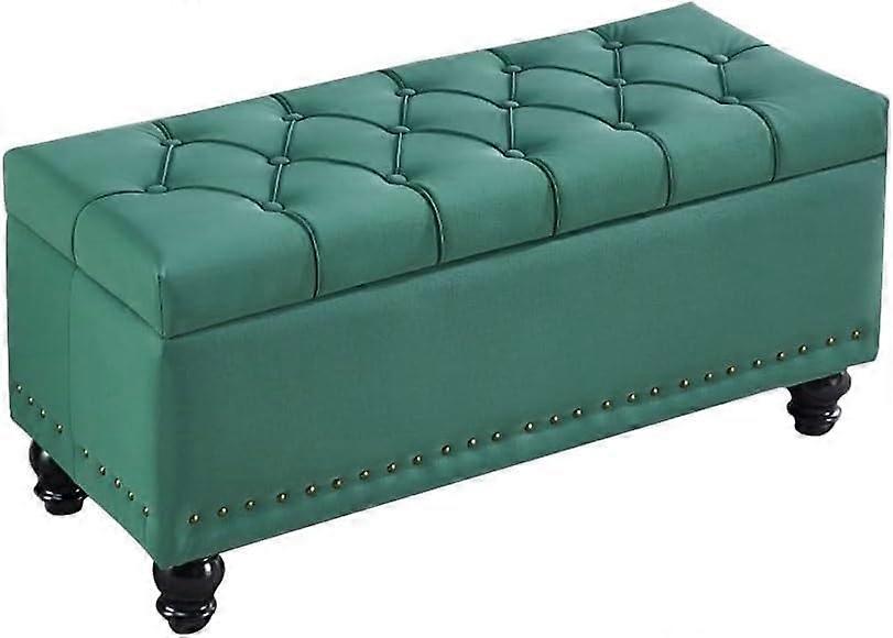 Retro Storage Ottoman Bench with Lift Lid for Hallway Shoe Rack, Dark Green 120cm