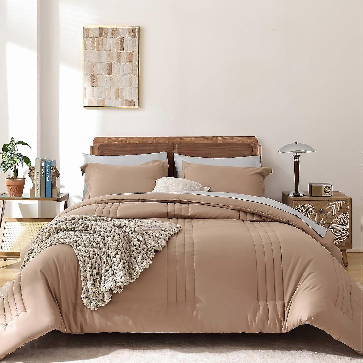 Product Description: 7 Picecs Bedding Comforters & Sets: Discover the perfect blend of comfort and elegance with the 7-piece bedding set. This inclusive and stylish ensemble is not only exquisitely designed but also remarkably easy to clean, making it the ideal choice for a comprehensive bedroom transformation. Previous page Taupe 7 Pieces Comforter Set: Learn More White 7 Pieces Comforter Set: Learn More Oatmeal 7 Pieces Comforter Set: Learn More DustyBlue 7 Pieces Comforter Set: Learn More Beige 7 Pieces Comforter Set: Learn More Pink 7 Pieces Comforter Set: Learn More 🧡【Elegant Design Home Decor】The vertical striped design of this bed in a bag set full exudes a modern minimalist charm, seamlessly blending with various home decor styles. Smoofy full comforter set enhances the aesthetic appeal and comfort of your bedroom, infusing a touch of sophisticated style into any sleeping space. 🧡【Comforters Full Size All Season】Featuring Smoofy's full size comforter sets rigorously tested microfiber filling blend, this pink comforter achieves the perfect balance of weight and warmth, creating a cloud-like sleeping environment year-round for cozy sleepers. 🧡【Ultra Soft & Warm & Breathable】Crafted with premium microfiber filling and a quilted design, the full bedding sets deliver extra softness, volume, and durability, Smoofy full sheet set with comforter providing the perfect level of warmth for year-round comfort. The finely brushed microfiber cover offers outstanding softness, while the smooth and breathable fabric ensures maximum comfort without any rustling noise, guaranteeing a restful night's sleep. 🧡【Easy Care Queen Comforter 7 Pieces】Our machine washable bed comforter full save you time and energy. Resists fading, Shrinking, and seam slippage. For lasting softness and to prevent pilling, wash on a gentle cycle with cold water and sun-dry or tumble dry on low. Enjoy cozy sleep for your family. 🧡【What You Can Get】Blush pink full size comforter 7 pieces: 1 comforter 79''x90'', 1 flat sheet 81''x96'', 1 fitted sheet 54''x75''+14'', 2 shams 20''x26'', 2 pillow cases 20''x30''. Furthermore, It's an excellent gifting choice. Give your loved ones the gift of elegant coziness, perfect for Mother's Day, Christmas, or simply to show you care. We believe everyone deserves the most stylish and comfortable comforters full size set!