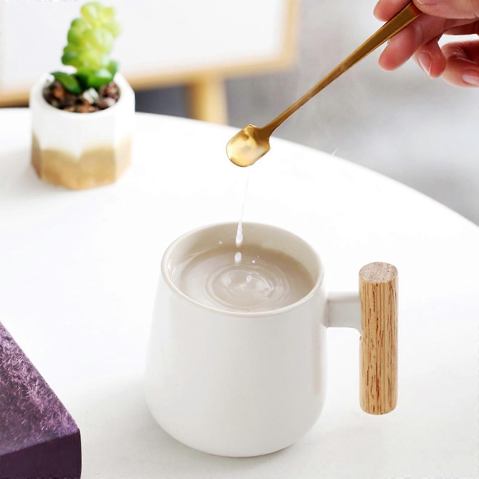 Txmfgh Scandinavian Style Wooden Handle Ceramic Mug Office Household Water Cup Couple Cup With Lid Spoon