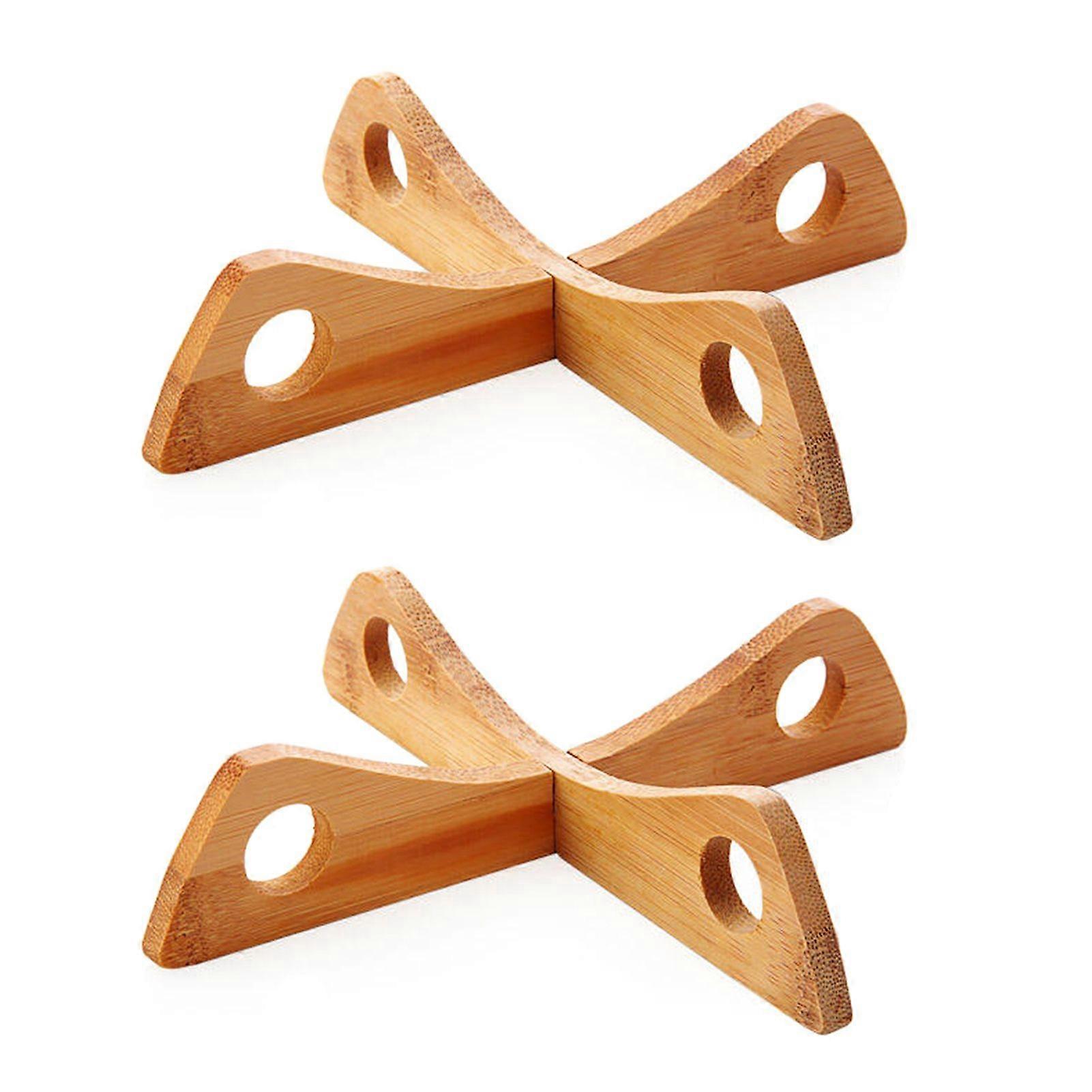 2Pcs Bamboo Table Mat Holder Removable Tray Anti-Limescale Steam Mat Tongue Groove Structure Anti-Slip Device Table Mat