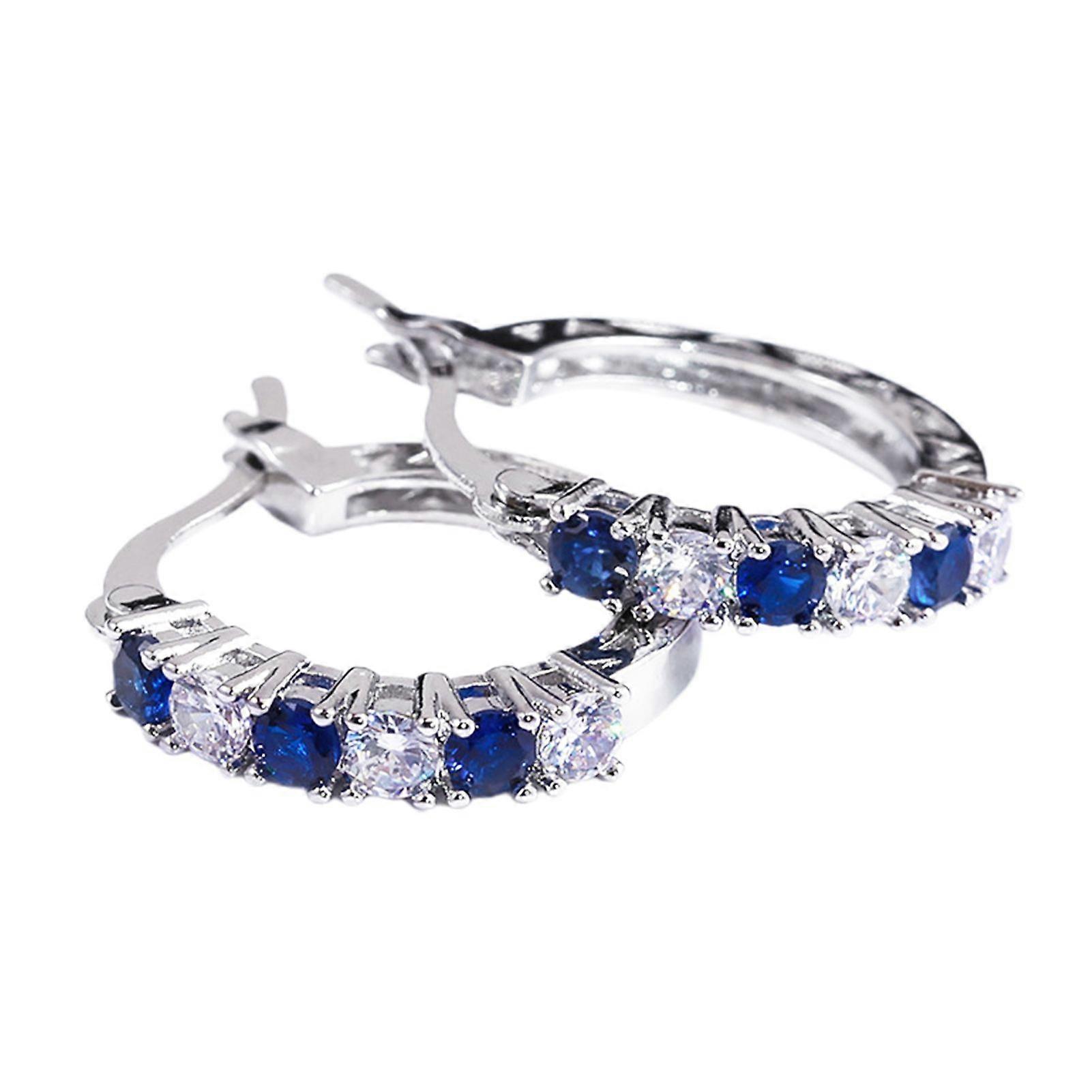 Timeless Classic Design: Elevate your style with these timeless classic earrings that exude a trendy vibe, perfect for ladies to women of all ages. High-Quality Copper Material: Crafted with precision from high-quality copper, these earrings ensure durability and comfort without causing any damage to your ears. Sparkling Cubic Zirconia Detailing: Adorned with sparkling cubic zirconia, these women's round drop earrings add a touch of elegance and glamour to your everyday outfits effortlessly. Statement Piece with Flair: Make a bold statement with these earrings that strike the perfect balance between flair and sophistication, ensuring you stand out in any setting. Versatile Styling Options: Whether it's for parties, dates, or daily wear, these earrings are versatile and chic, making them an ideal accessory for various occasions. Surprise your female friends with this stylish gift that complements their fashion sense perfectly. Description: Enhance your style with these timeless classic earrings that exude a trendy vibe, perfect for ladies of all ages. Crafted from high-quality copper material with exquisite workmanship, these earrings ensure comfort and elegance without causing any damage to your ears. The women's round drop design is adorned with sparkling cubic zirconia, adding a touch of glamour to your everyday outfits. This statement piece strikes the perfect balance between flair and sophistication, making it a must-have accessory for parties, dates, or casual wear. Gift these stylish earrings to your female friends and elevate their fashion game effortlessly. Item Name: Earrings Material: Copper Gender: Women Style: Chic Features: Blue Cubic Zirconia, Round Circle Shape, Polished Size Details: L: 2cm/0.79", W: 1.3cm/0.51" (Approx.) Notes: Due to the light and screen setting difference, the item's color may be slightly different from the pictures. Please allow slight dimension difference due to different manual measurement. Maintenance: Clean with soft cloth, keep away from chemical, avoid scratches, avoid wearing in contact with water, and avoid wearing while sleeping. Package Includes: 1 Pair of Earrings